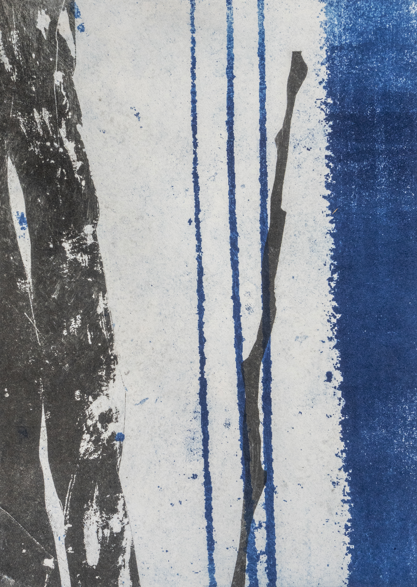 Abstract Zwart Landschap Blauw Papier Geabstraheerd Natuur Boom Grafiek Uniek Tak Monoprint