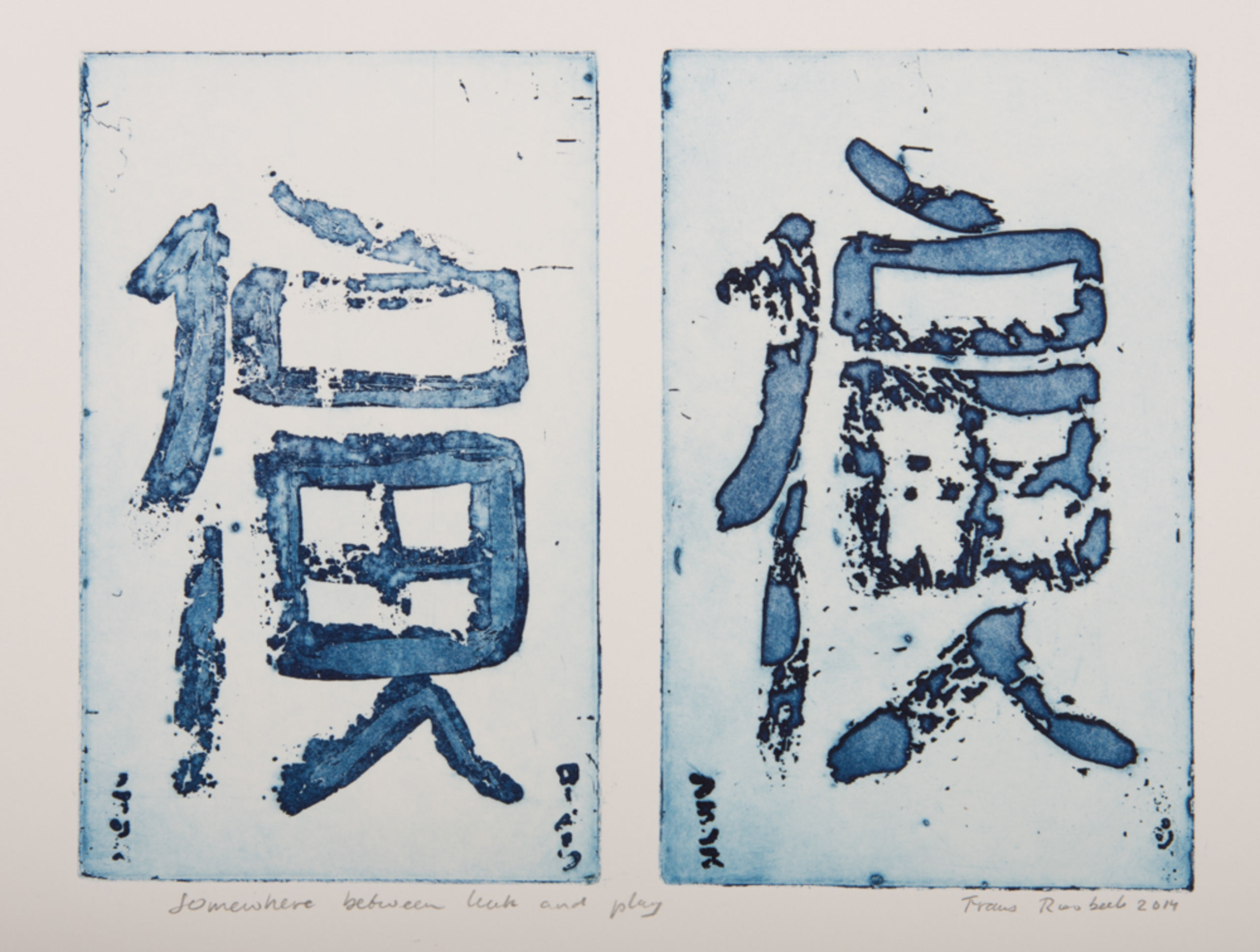 Het karakter dat het midden houdt tussen de Chinese karakters voor Geluk en voor Spel. Dit werk ligt ten grondslag aan het idee voor de serie "More than a character - Chinese stories"