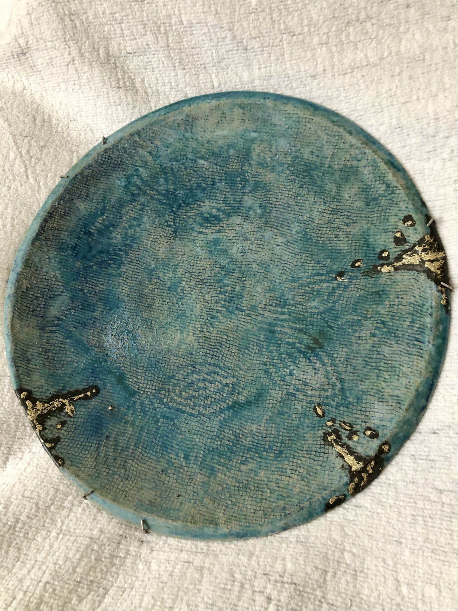 turquoise glazuur met 3 goudkleurige accenten