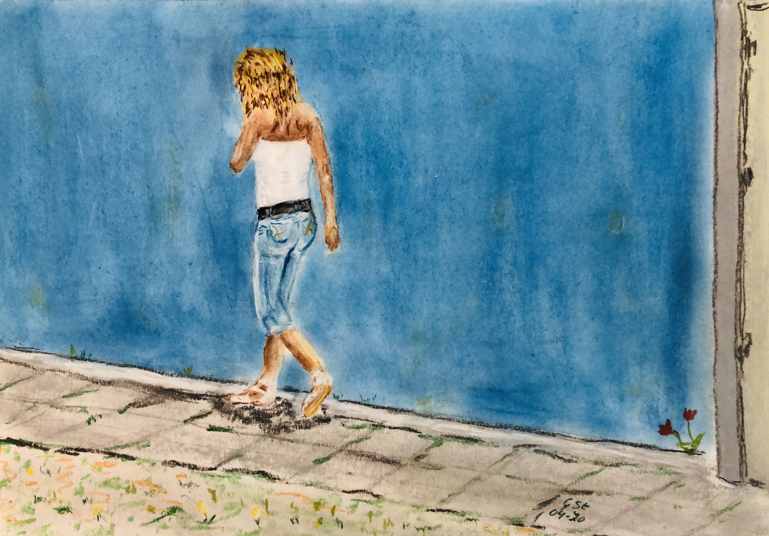 Mensen - Meisje bij blauwe muur - 2020-04