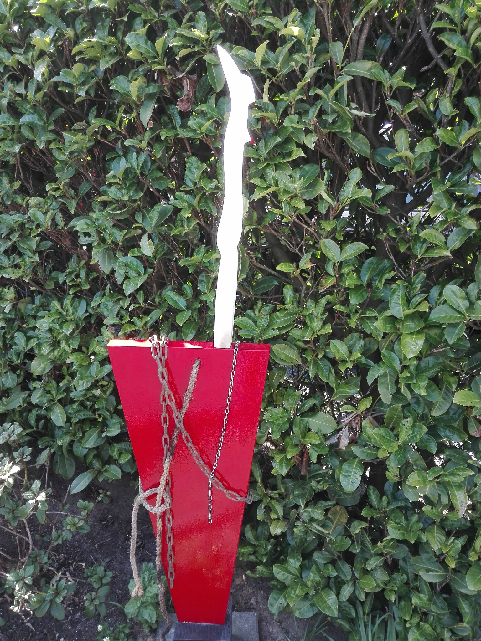 Irene staat voor vrede. Zij rijst op uit een zwarte en rode ondergrond. Deze kleuren en de kettingen en het touw staan symbool voor de oorlog. Het beeld is gemaakt in het kader van de herdenking 75 jaar bevrijding.