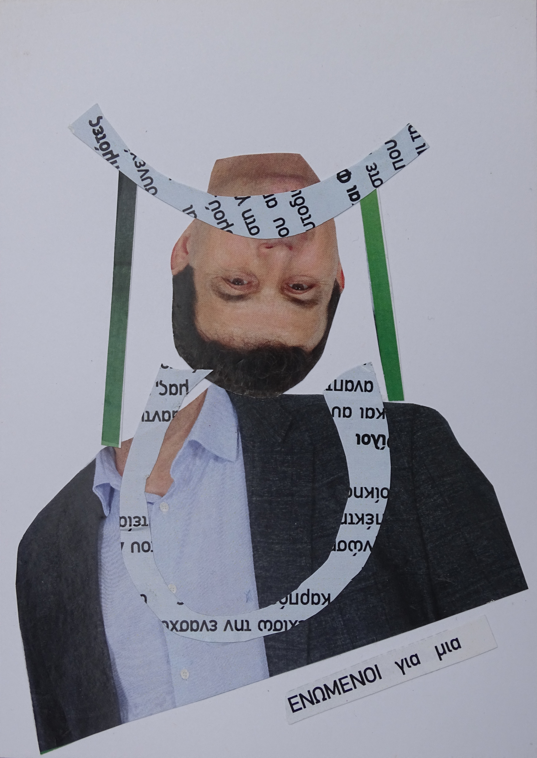 Enomenoi is Grieks voor verenigd / een conditie die we zelden zagen in de laatste jaren, / noch in Europa, noch in Griekenland. // Vrijdom is een conditie / die je niet voelt. (collage, gemaakt in Thessaloniki, Mei 2019)