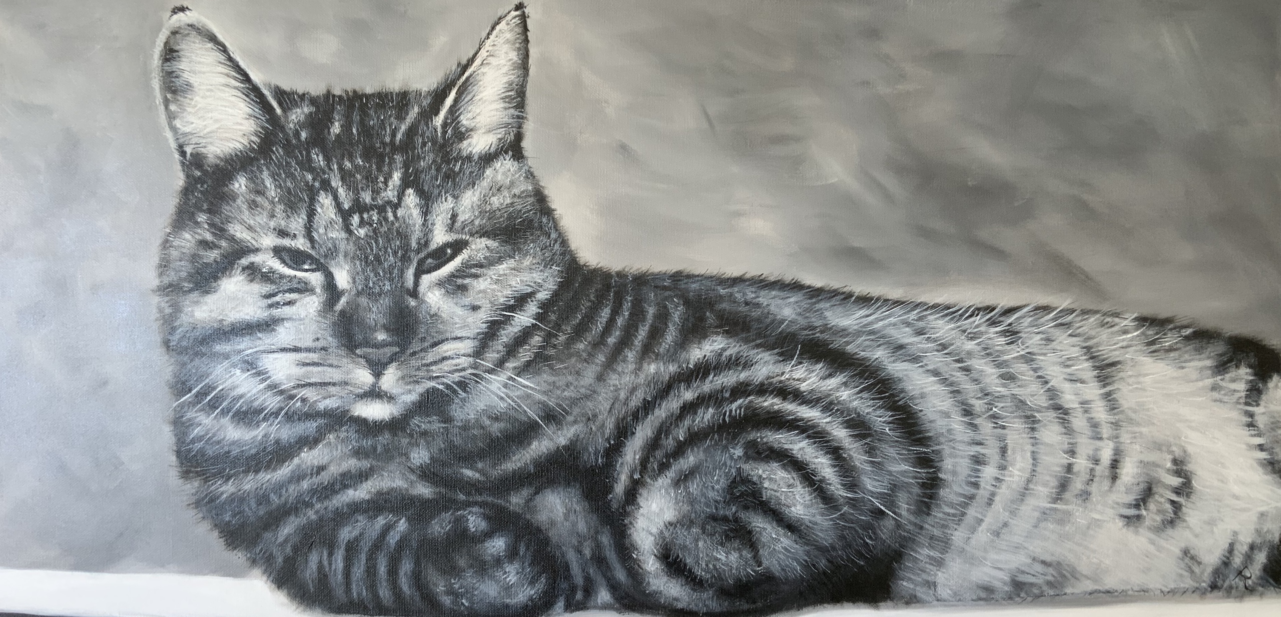 Met veel precisie deze kat naschildert van een foto. in opdracht gemaakt. *Dit schilderij is met acrylverf en penseel opgebracht. *De zijkanten zijn meegeschilderd. * Vernislaag is aangebracht mat/glans. *De canvas heeft een hout frame met spies opgespannen. *Het schilderij is gesigneerd op de achterkant met de eerste letters van mijn voor en achternaam (RP) Renate Peters en met de datum dat het schilderij is gecreëerd. Aan de voorkant is er de letter R (van Renate) te vinden rechts onderin.