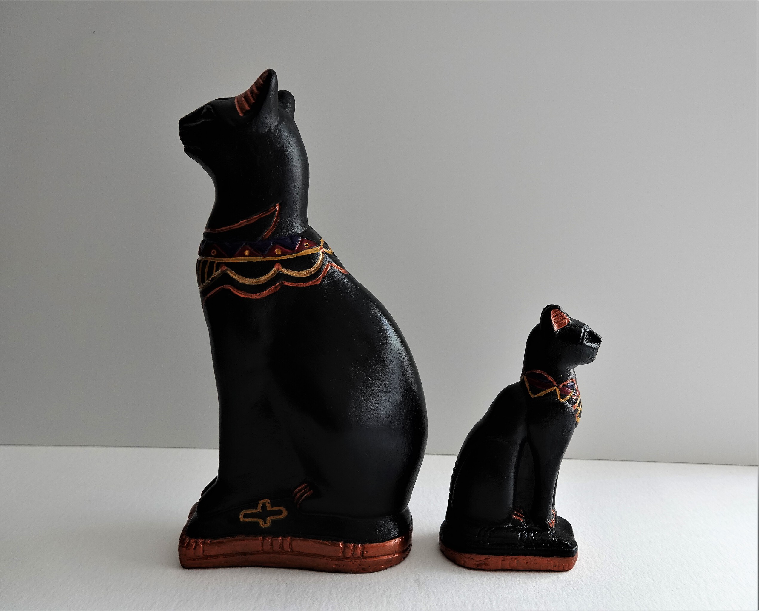 Sphynx cat Egypte. Twee beschilderde beelden.