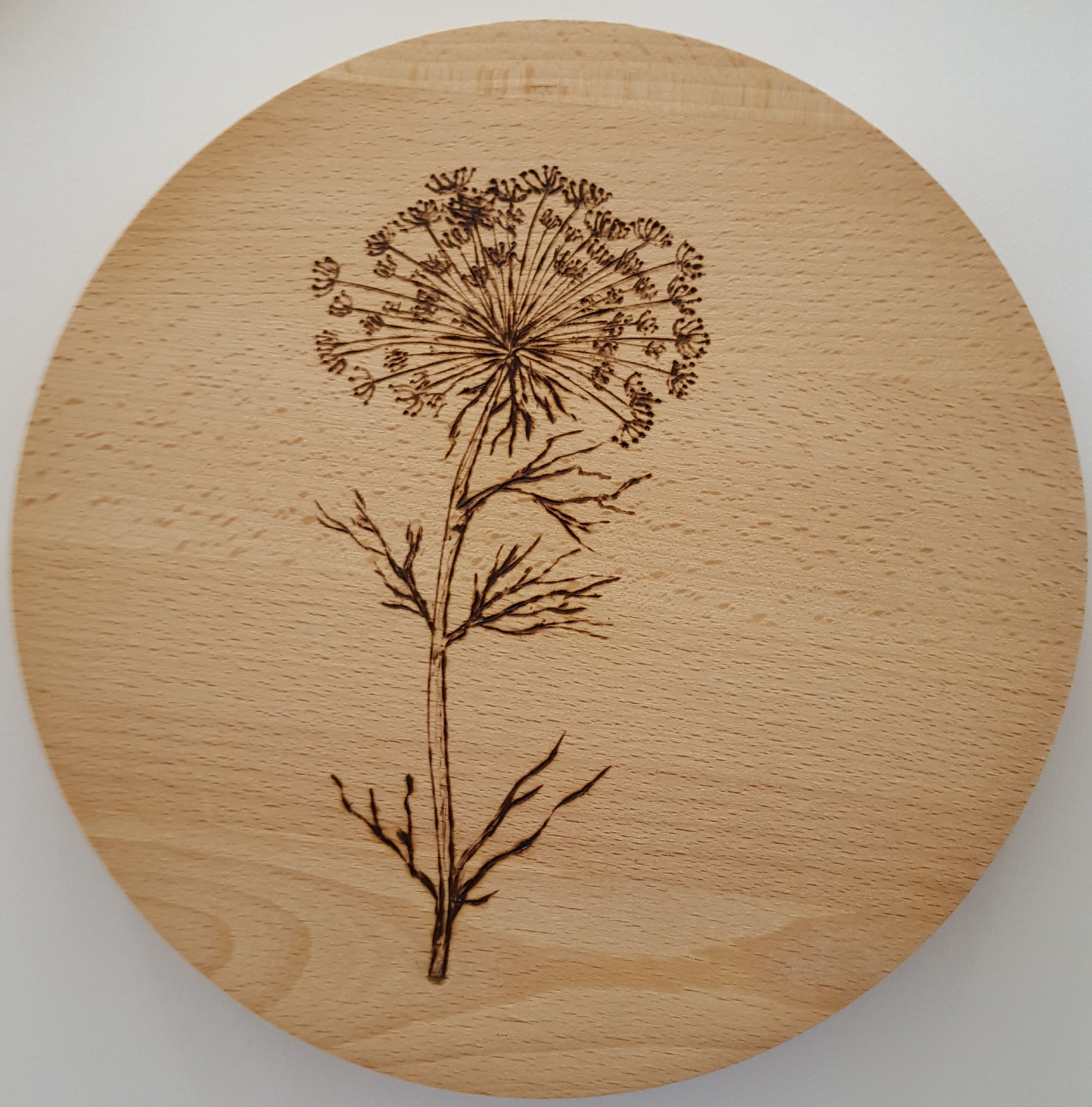 Bloem op beukenhout gebrand