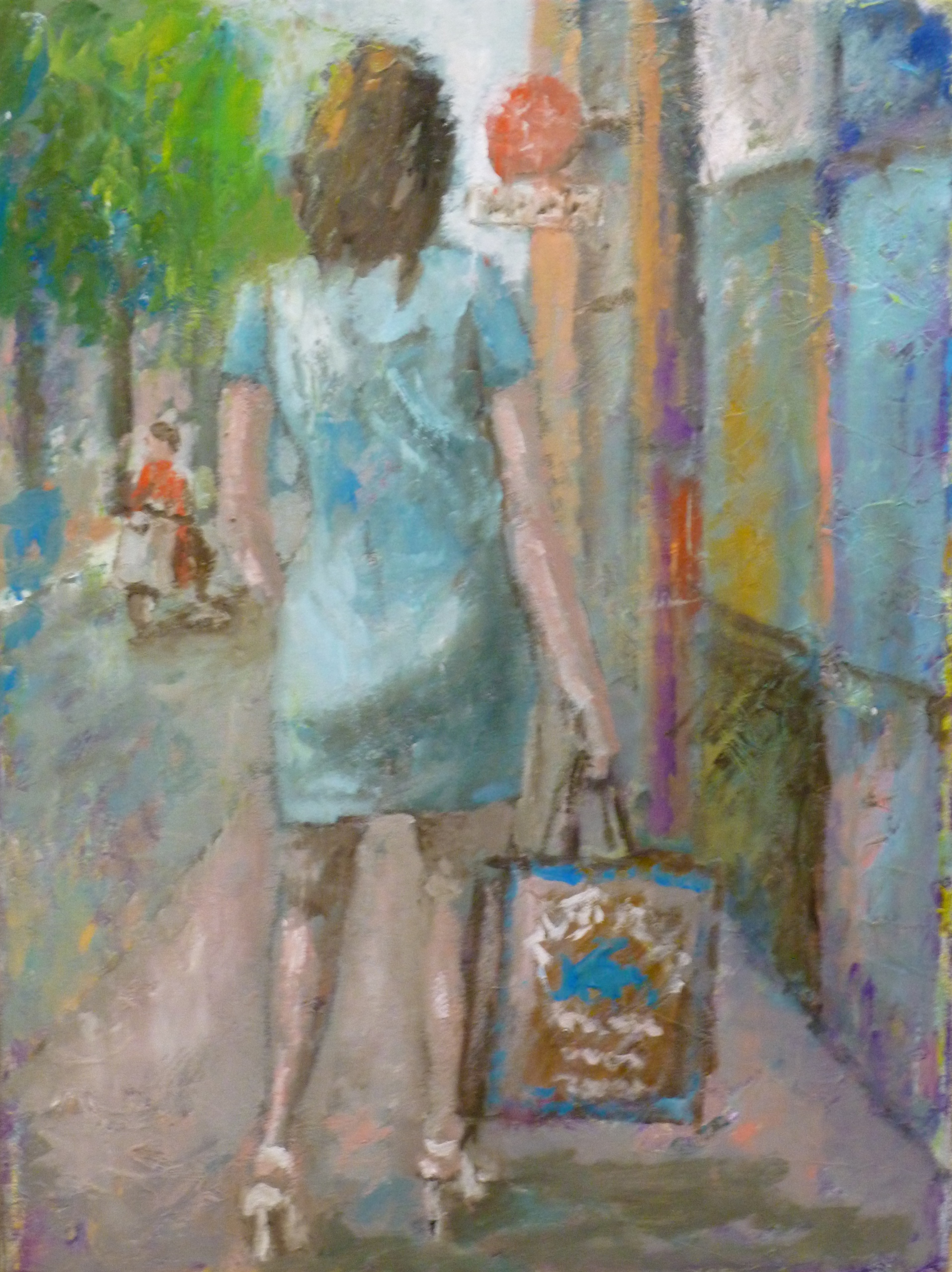 Figuratief Vrouw Winkelen Impressionisme Blauw Kleurrijk Bart Buijsen