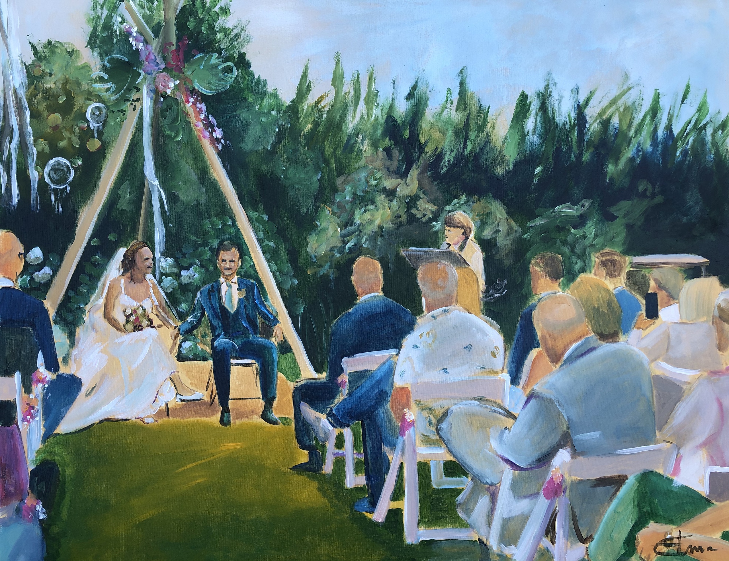 Bruiloft Ceremonie Landelijk Tuin Bruid Bruidegom Gasten Feest Cadeau Schilderij