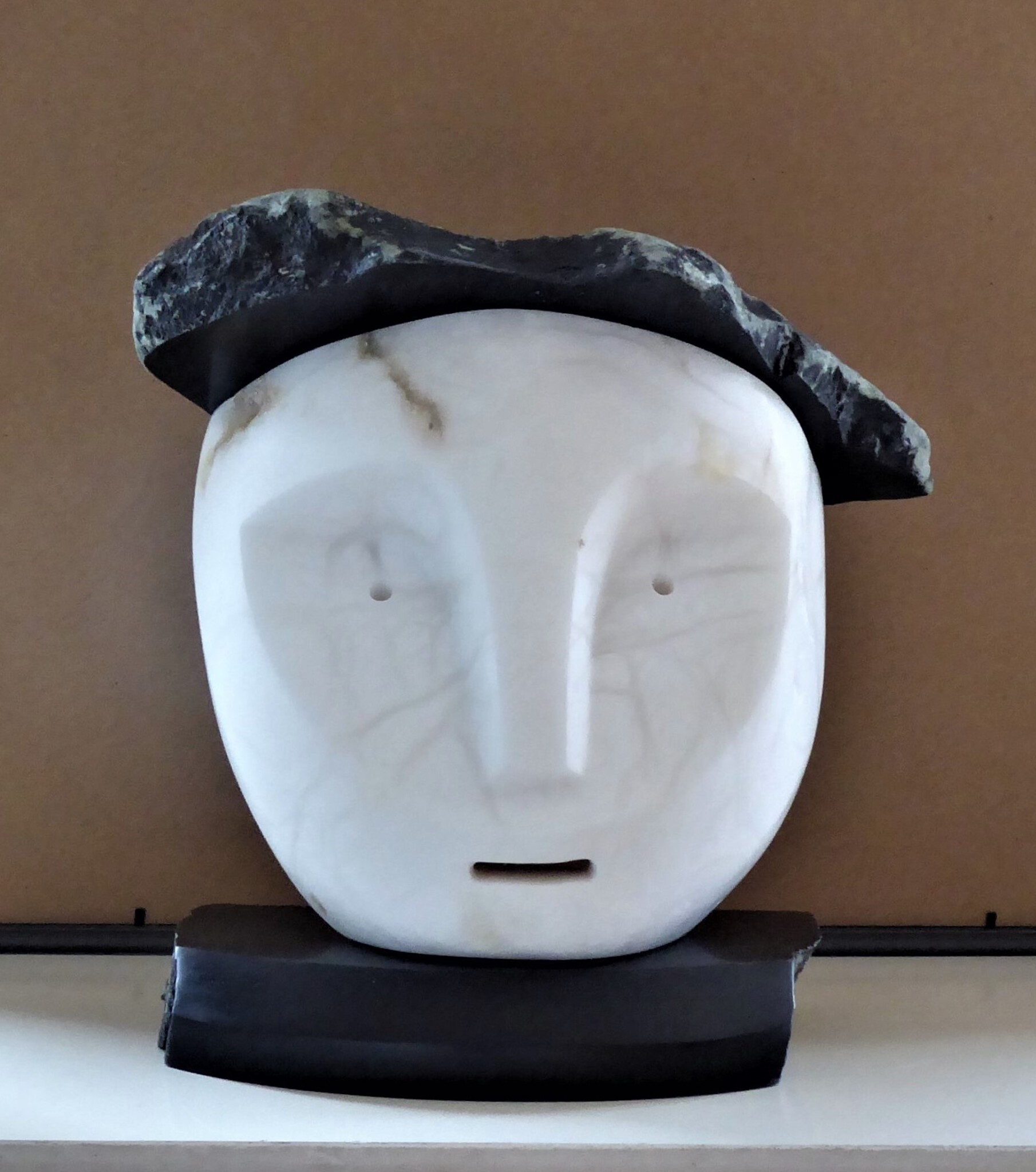 Masker van witte albast, gecombineerd met zwarte speksteen.