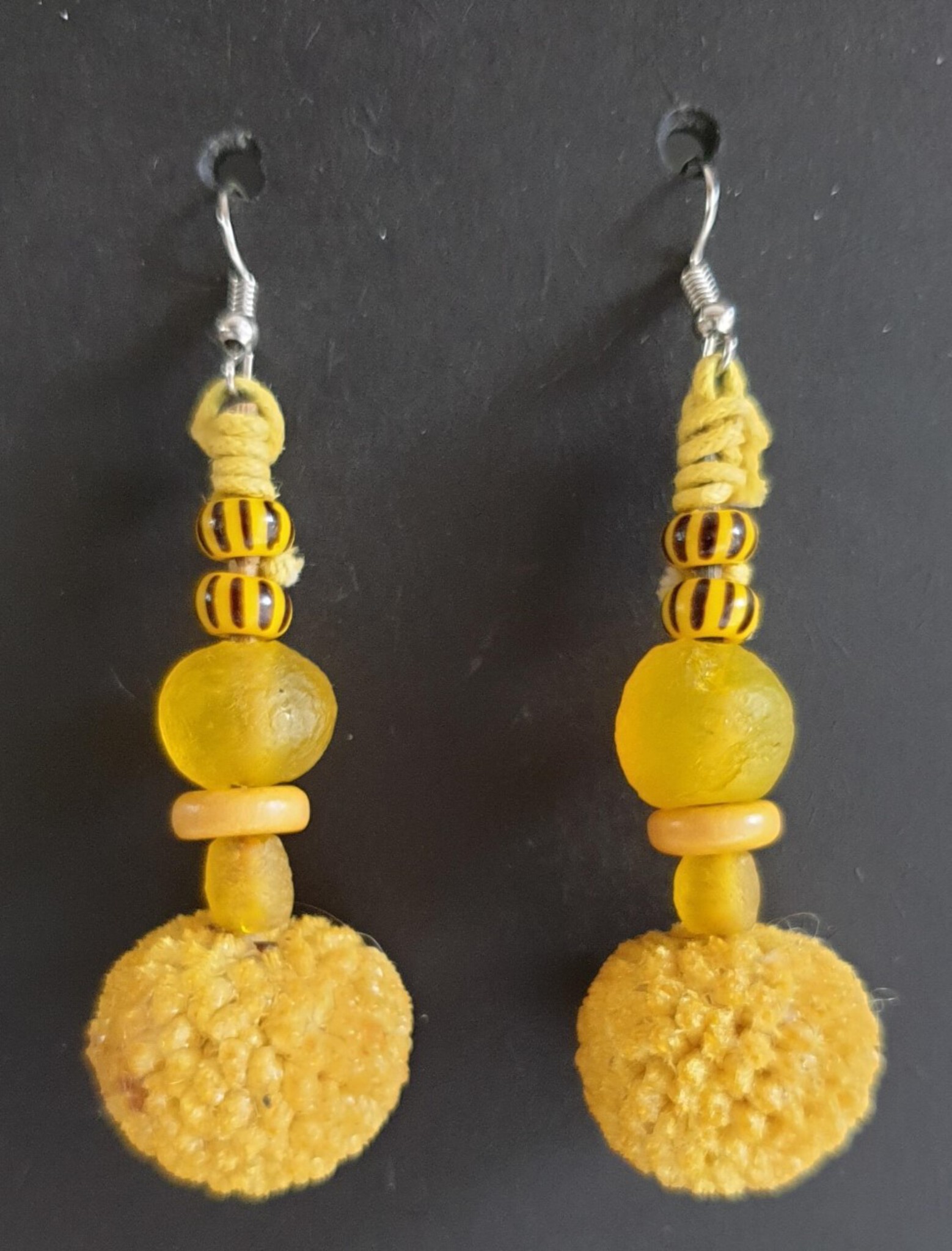 Oorbellen van natuurlijke materialen met glazen kralen