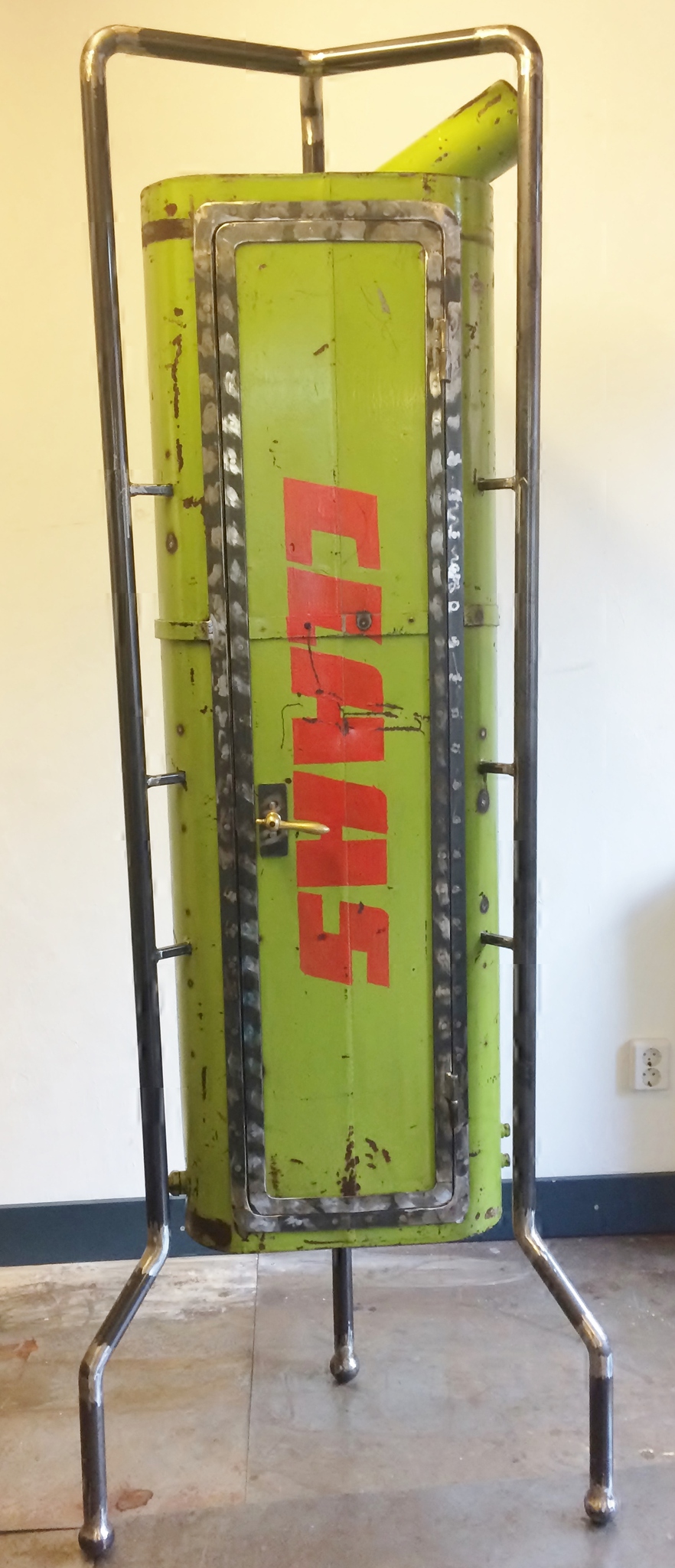 'Even bijtanken...' een mooie collectie whisky/whiskey wil je op een bijzondere wijze bewaren. Hetzelfde kan ook op gaan voor een rijke verzameling likeurtjes uit de Caraïben... De circa 50 jaar oude CLAAS dieseltank van een combine, een kwartslag gedraaid, voorzien van deur en geplaatst in een sterk frame is de ruwe bolster, de glimmende pit van binnen bestaat uit een spiegelende achter- en zijwand en een aantal hardhouten planken.