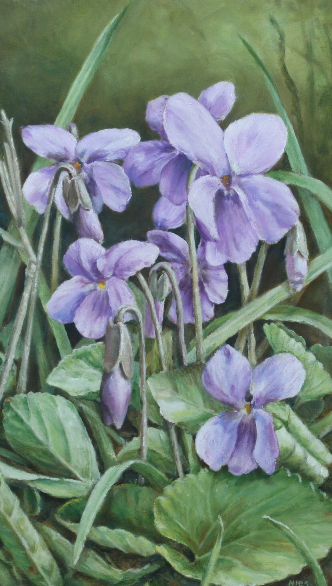 Nies van Dijk schildert met olieverf en eitempera. De dynamiek van vergankelijkheid in de natuur is een terugkerend thema in haar werk.