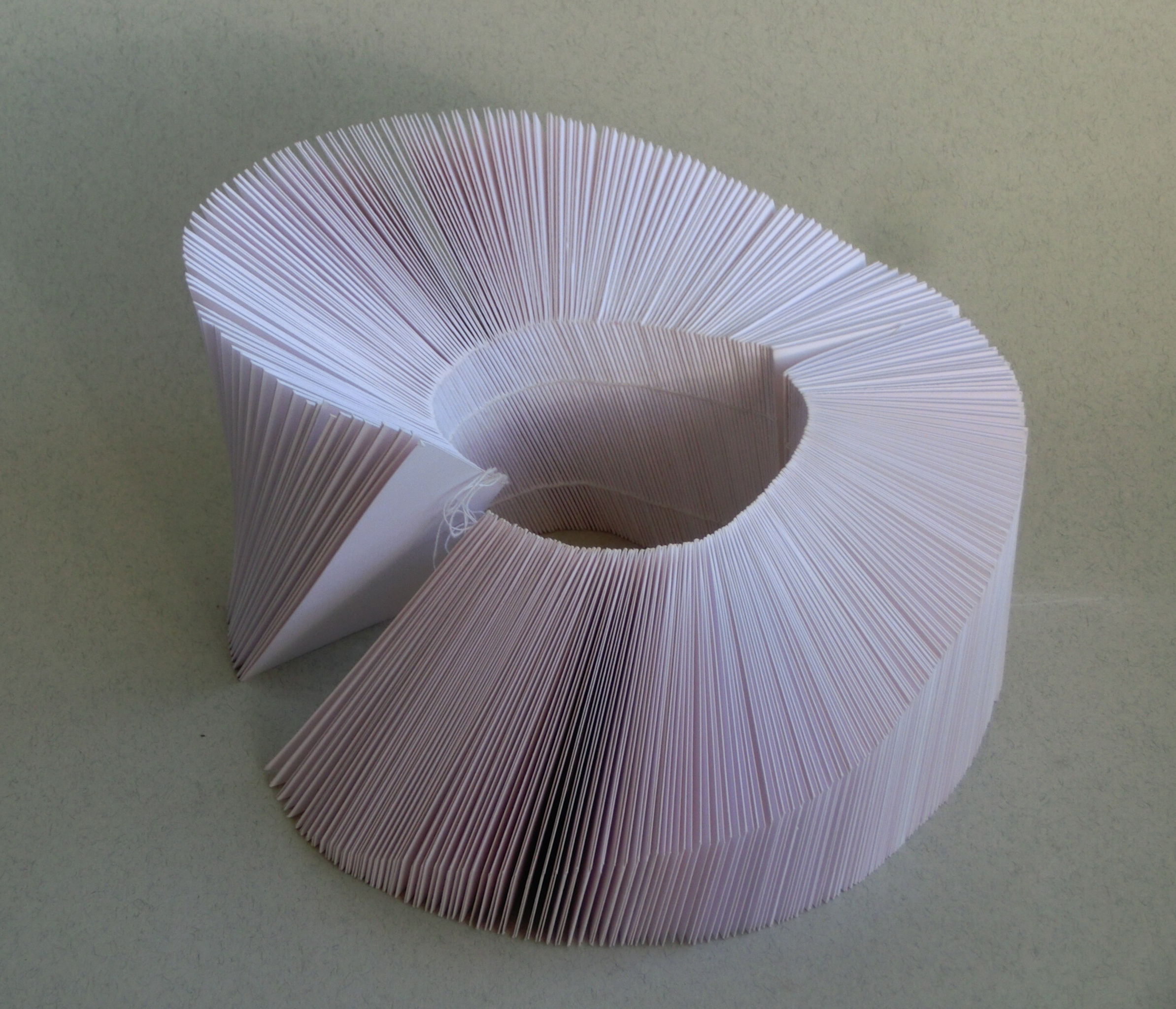 hier heb ik 2 'boeken' tegen elkaar gezet, verlopend van heel laag tot hoog- ze zijn elkaar compelment. Met zo'n lang boek kun je een cirkel maken