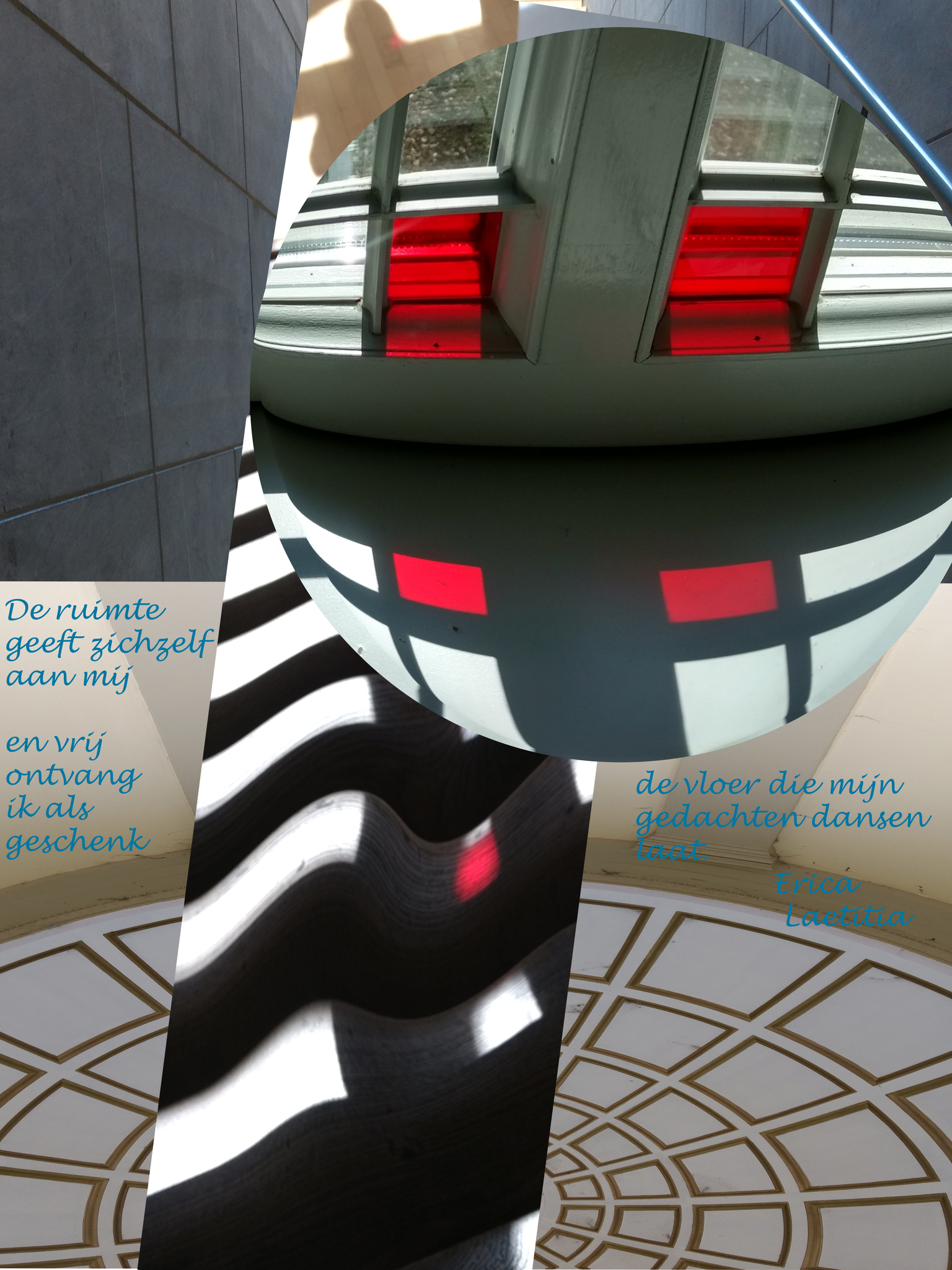 Soms kan in een gebouw de hoogte van de muren, de kleur van de ramen of het patroon op de vloer je zo'n gevoel van vrijheid en ruimte geven, dat je als het ware je gedachten onbelemmerd kunt laten dansen. De foto wordt afgedrukt op aluminium, canvas of een ander materiaal en voorzien van een ophangsysteem. Maat en prijs in overleg.