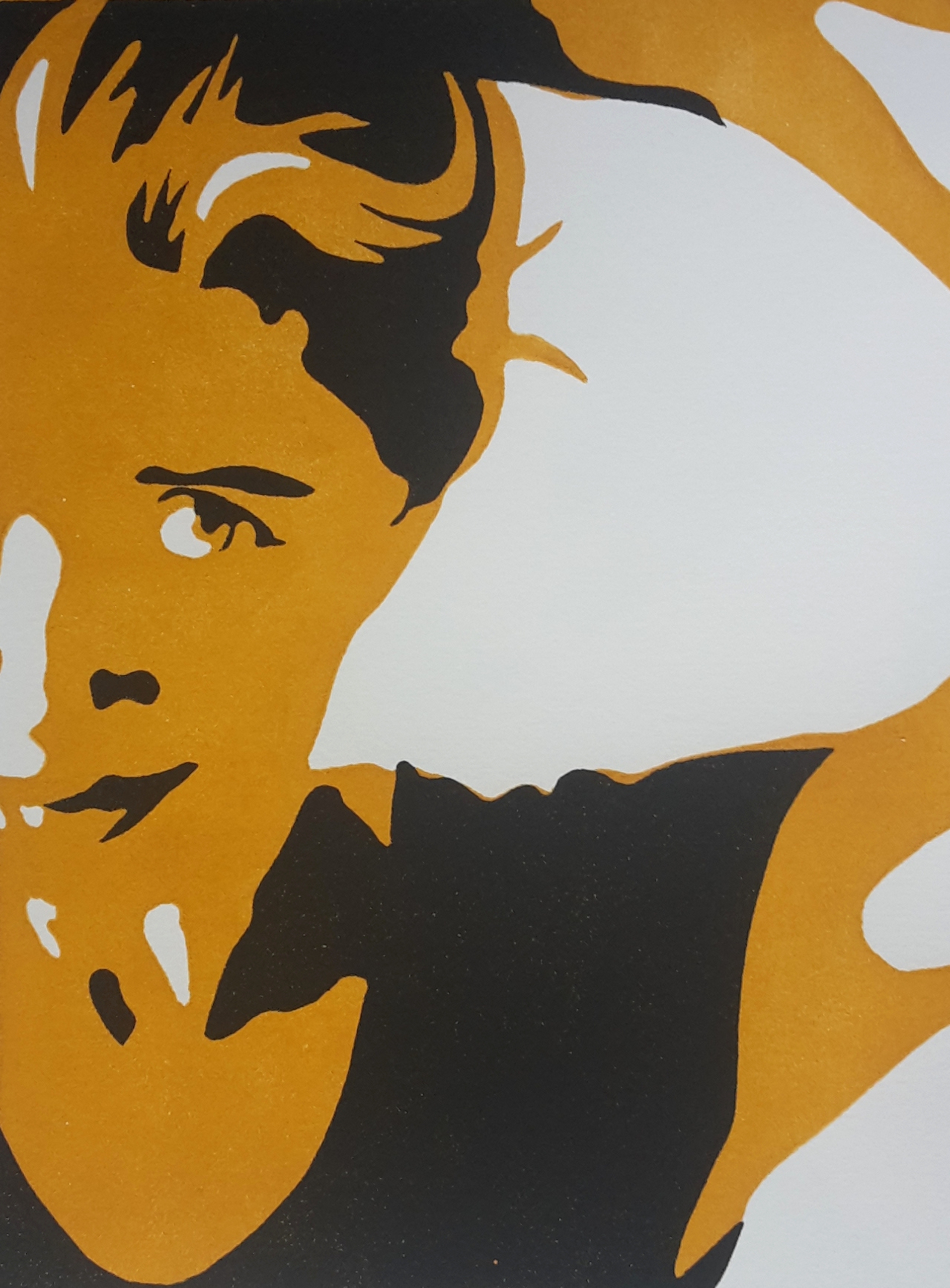 Deze serie maakte ik aan de hand van foto's van mezelf. Ik teken eerst de vormen per kleur en snijd dan foamplaten in die vorm.