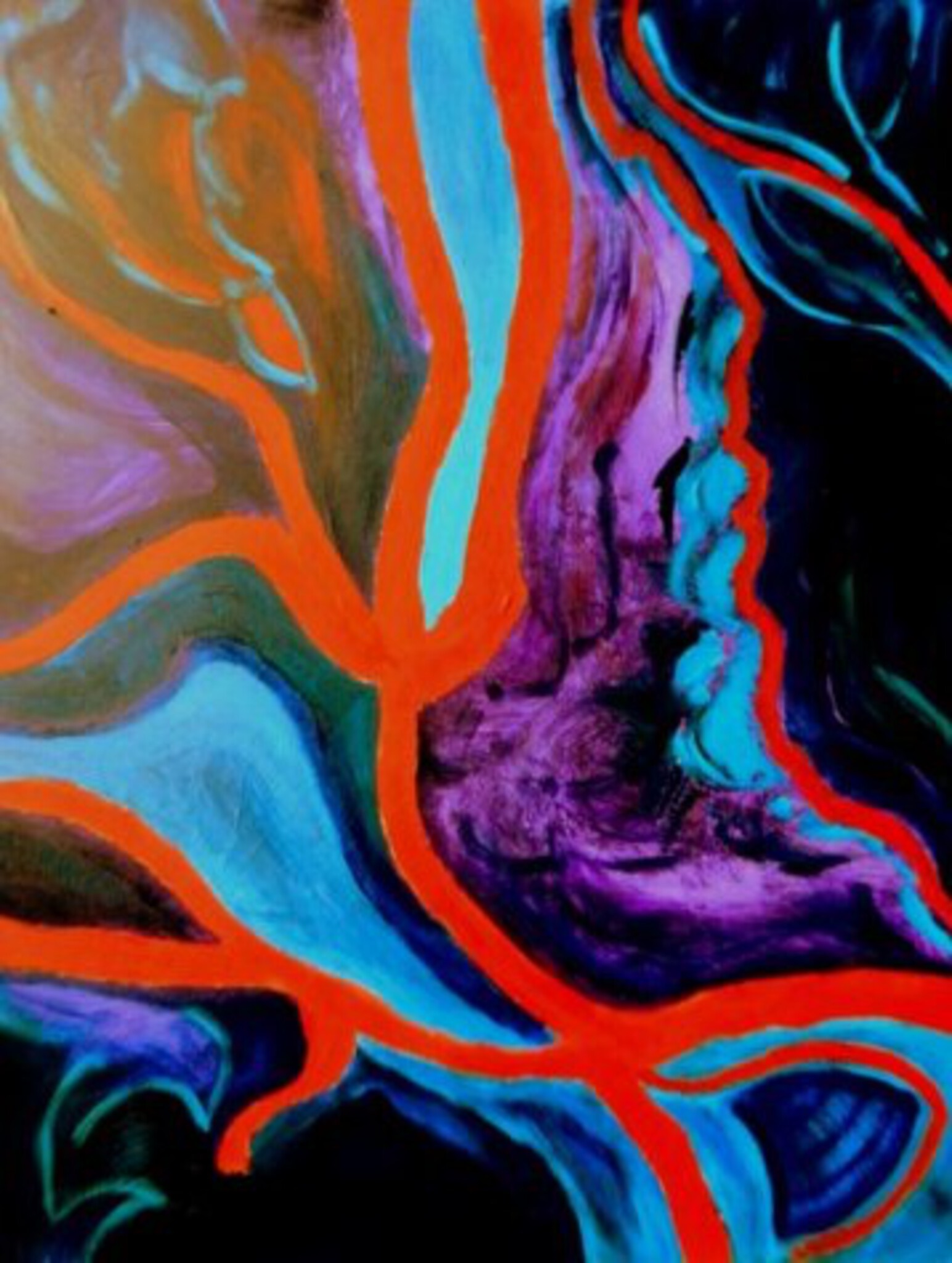 abstract in rood, paars, en blauw