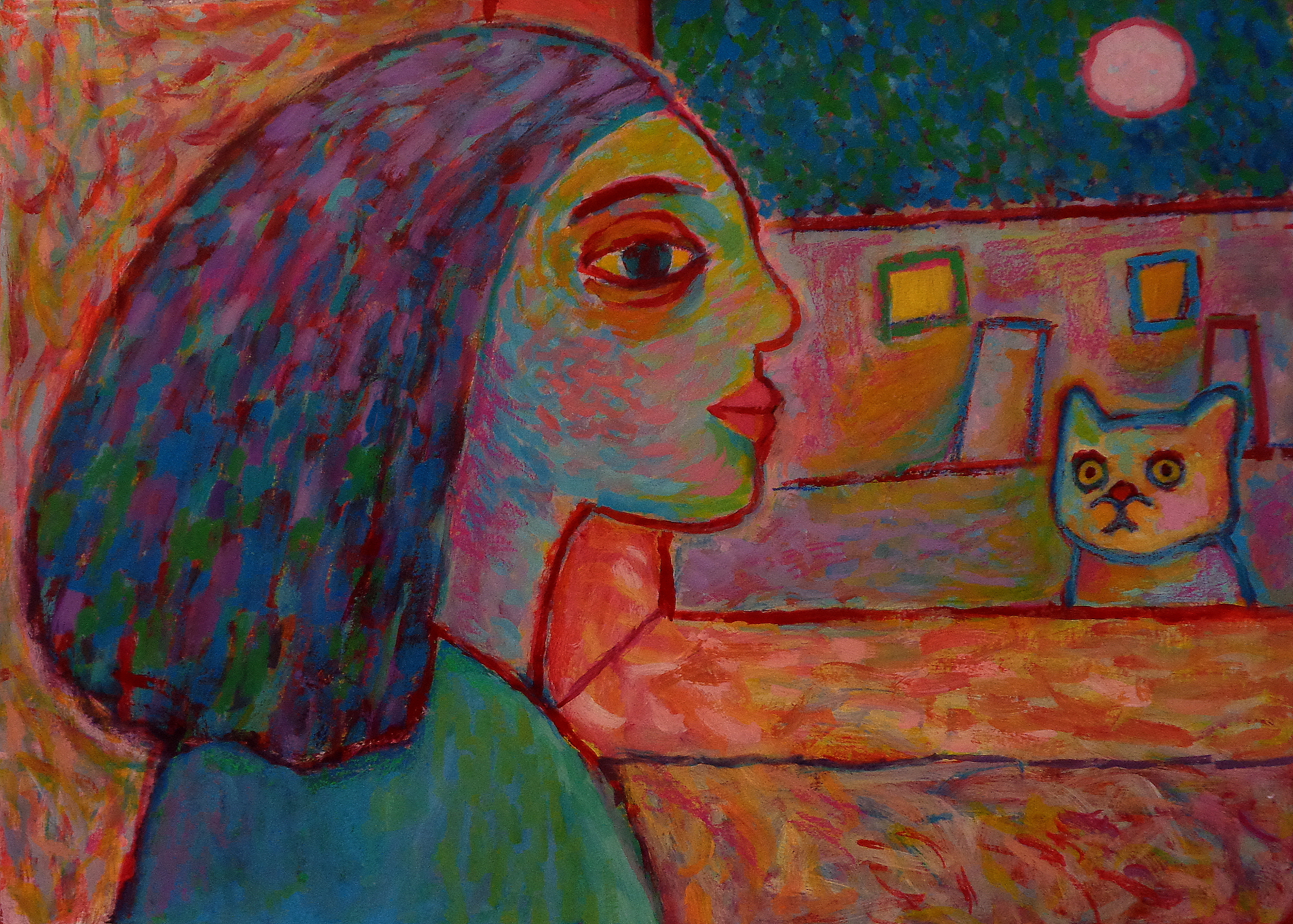 Vrij werk in Acrylverf en oliepastel