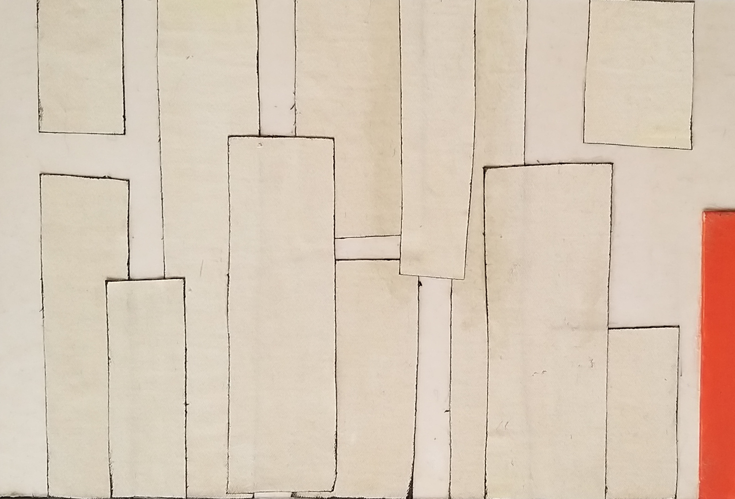 Wit Oranje Hout Paneel Acrylverf Textiel Karakter