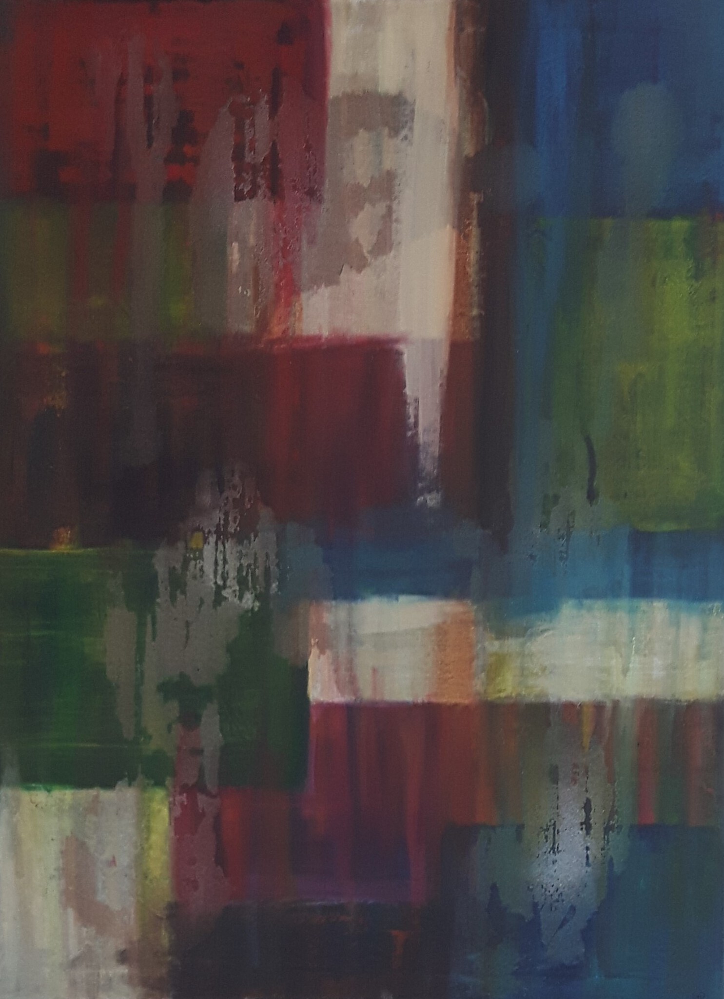 abstract mixed media, sprekende kleuren, ingelijst Expositie 2020 kantoorpand Maaspoort in 's-Hertogenbosch