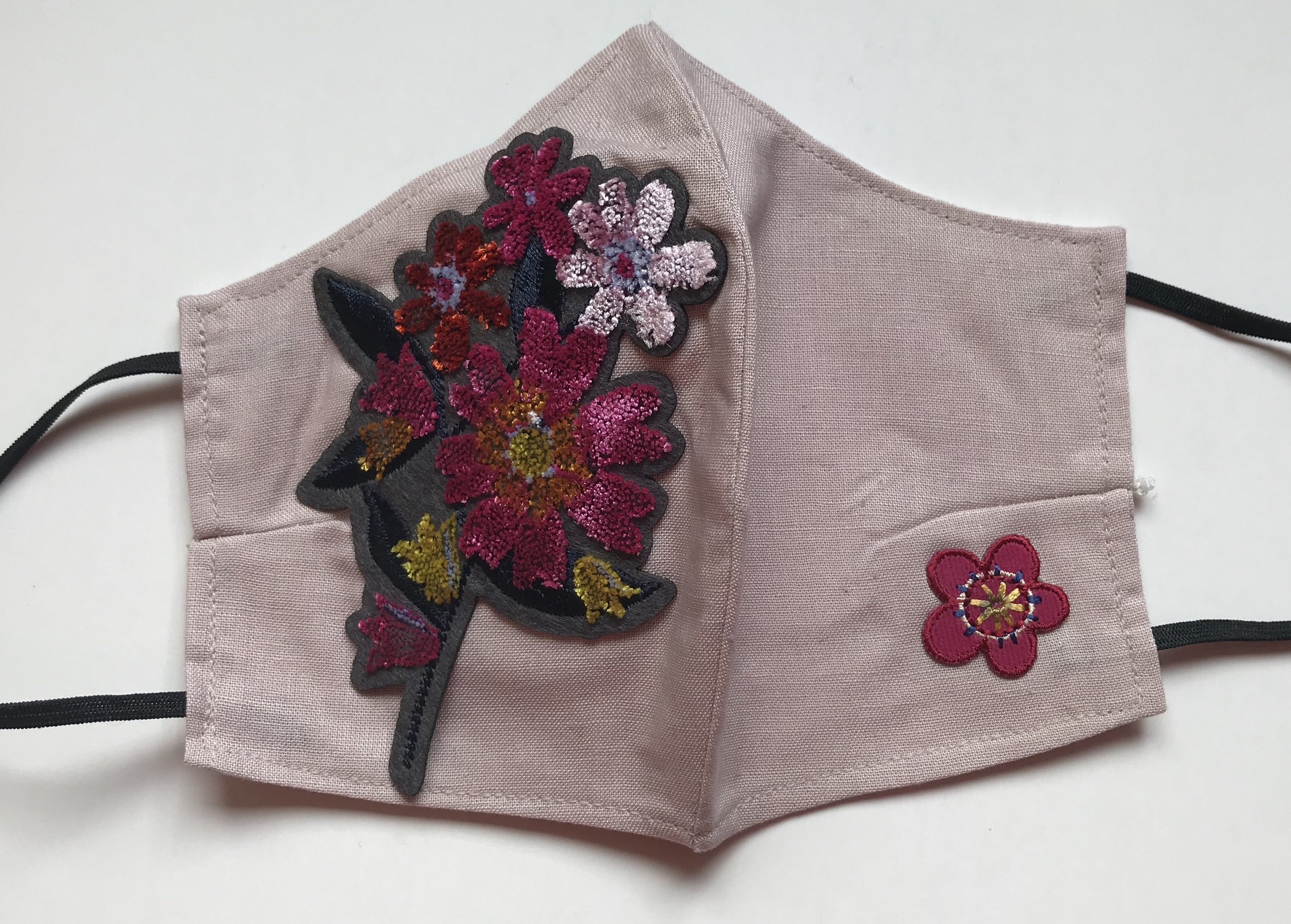 Roze mondmasker met bloemenpatches