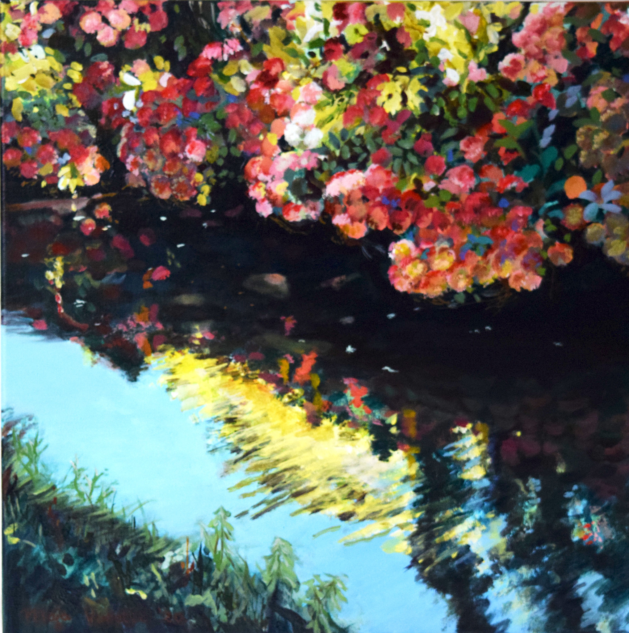Weerkaatsing van de hortensia's in het water