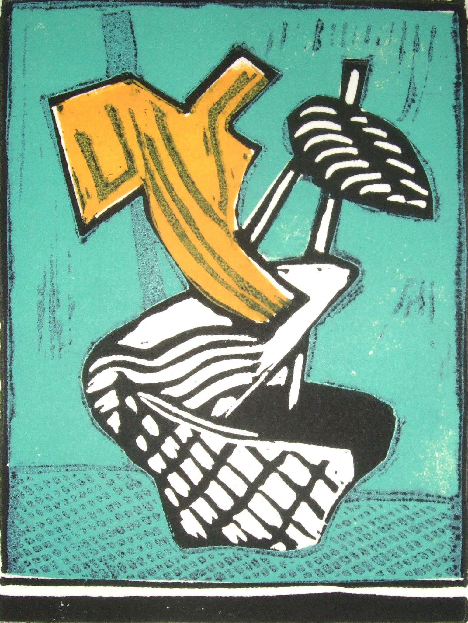 Prentje cadeau (kleine meer-kleuren linosnede, met passe-partout in aluminium of eikenhouten lijstje, formaat A4) € 125,-- inclusief verzendkosten Voorbeelden te zien bij de informatie pagina’s