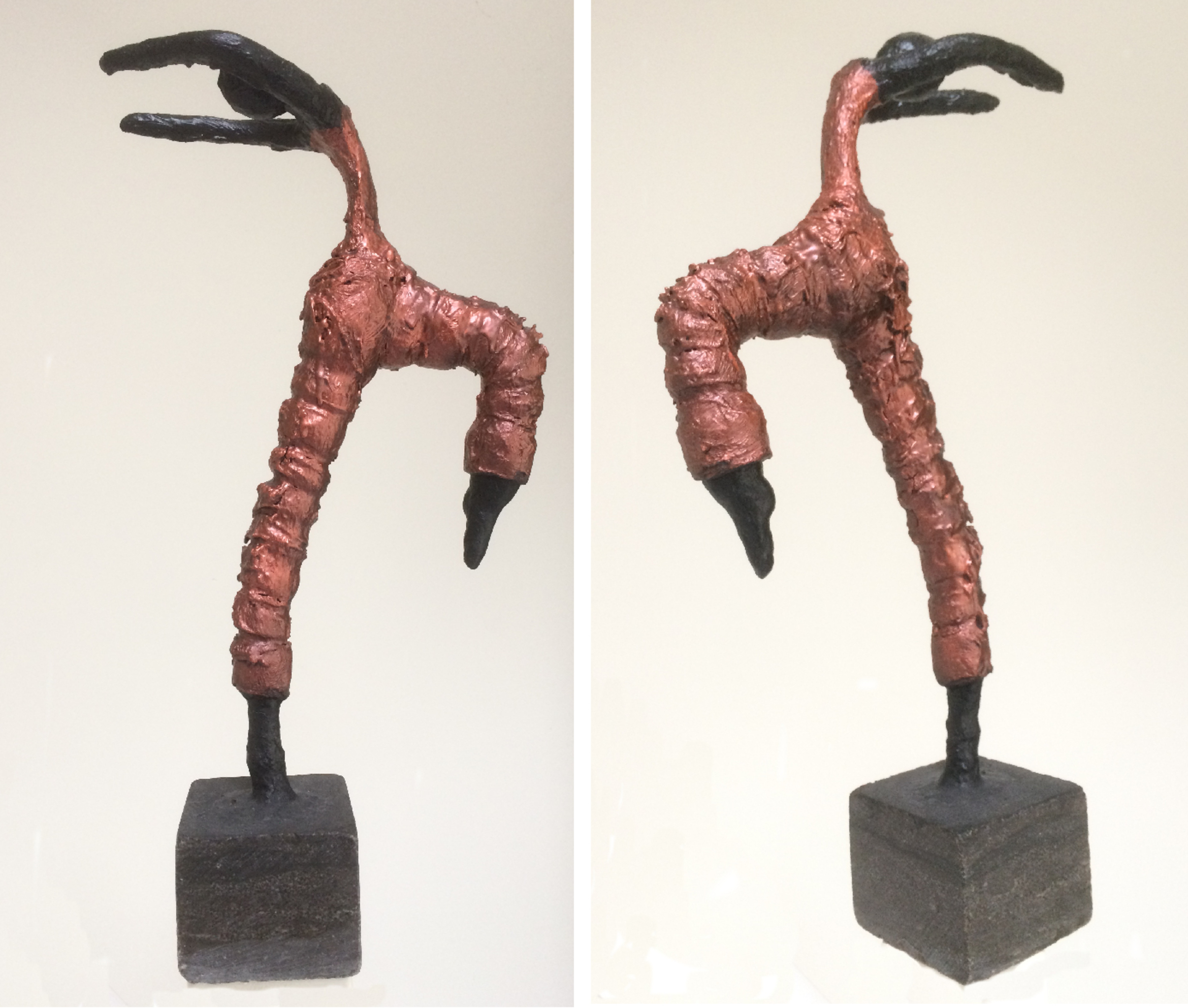 Dit beeld is voor binnen. Dus niet geschikt voor buiten. Gemaakt van 2-componentenklei. Gepatineerd in koperkleur.