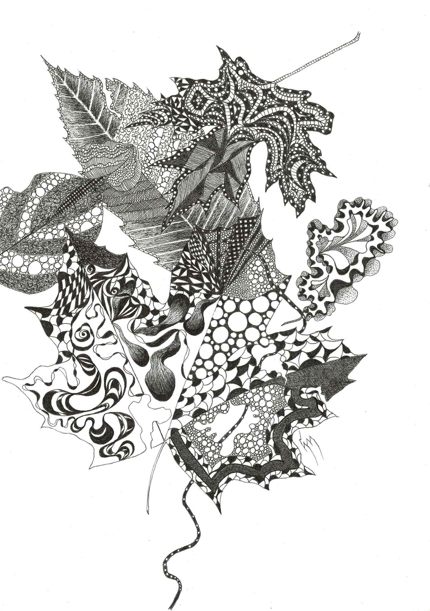 Tekening Herfst Intuitief Pentekening Meditatief Herfstbladeren Kunstanders