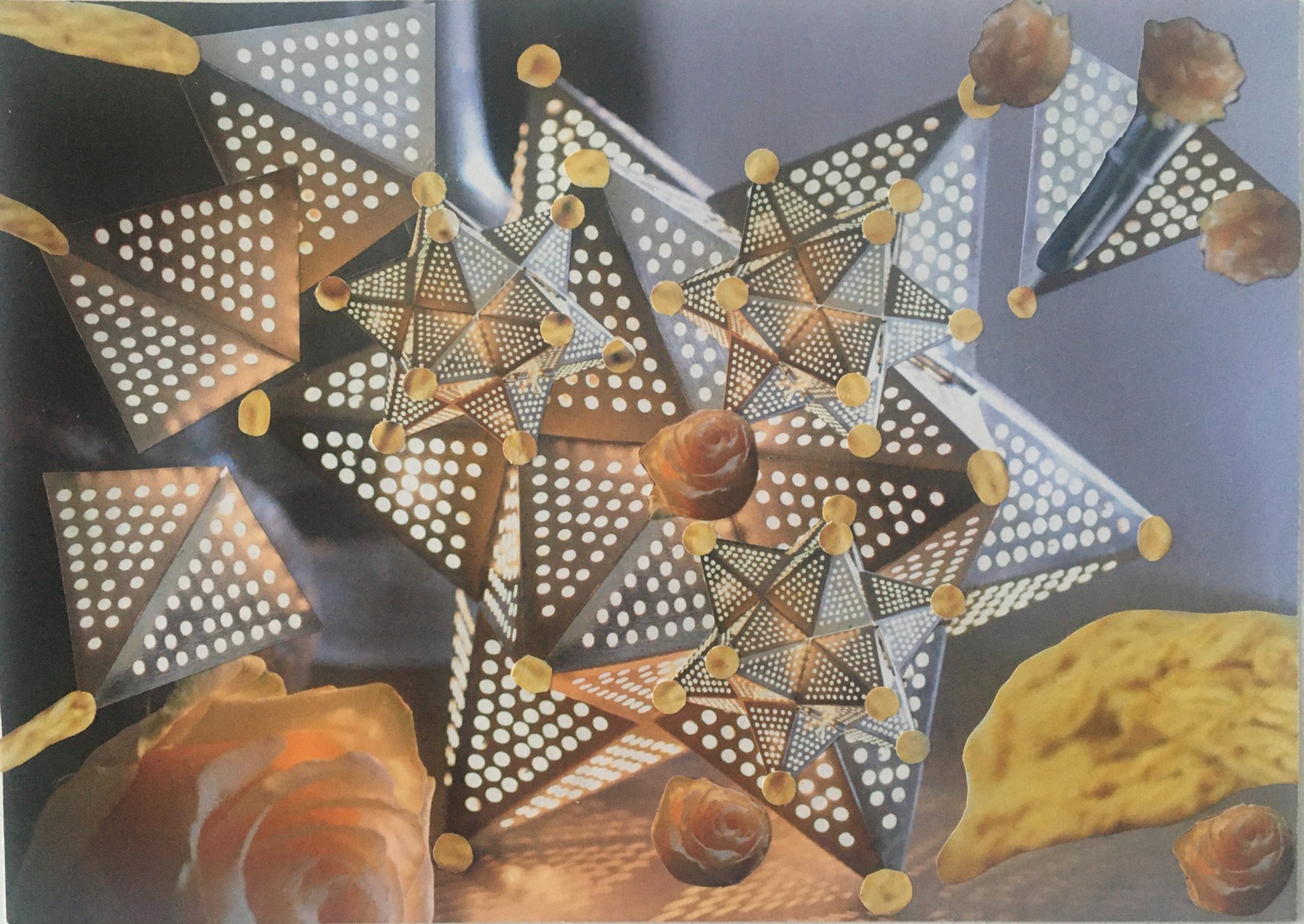Surreeel Oranje Geel Spiritueel Kleurig Papier Rozen Flow Verhalend Collage Papierkunst Spiegel Positief Intuïtief Artiest Kunstenaar Sterren Verhaal Bolletjes Kuiken Bewegend Lijm Boodschap Schaar Papierkunstenaar
