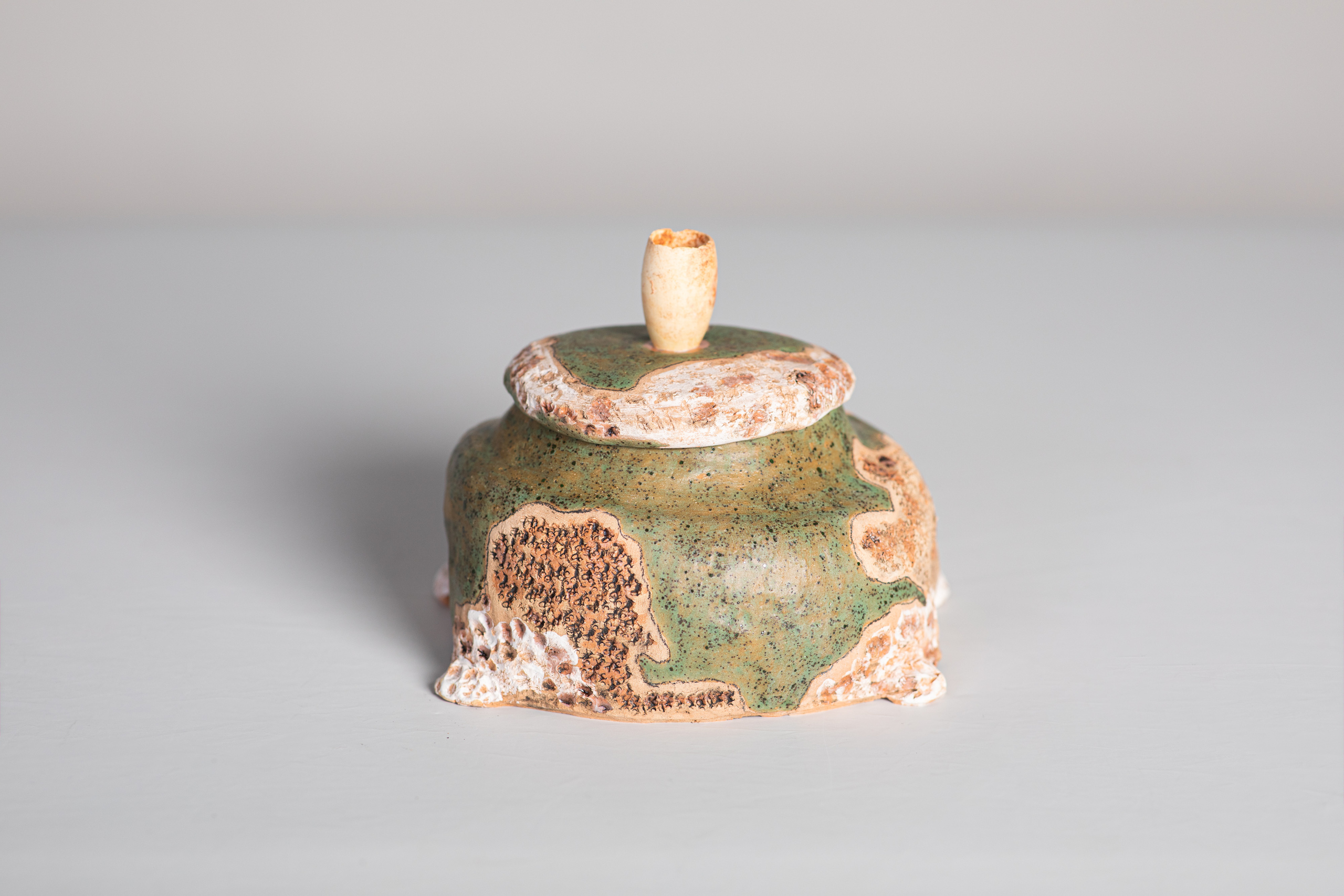Keramiek Anneke Mulder (1955) Een ontdekkingstocht via Suriname terug naar mijn roots in De Beemster – dat is het verhaal van mijn keramiek. Na mijn opleiding Textiel aan de Amsterdamse Academie voor Beeldende Vorming (1983) volgde ik ook cursussen keramiek, waar ik aanvankelijk weinig mee deed. Dat veranderde toen ik in 2011/2012 in Suriname woonde. Ik werkte een jaar onder leiding van kunstenaar Soeki Irodikromo. De enorme rijkdom van thema’s in de natuur van Suriname was inspirerend. Terug in Nederland bleek echter ook de klei uit mijn eigen omgeving geschikt voor eigenzinnige toepassingen. Inmiddels werk ik met klei uit de Beemster, Purmer en Katwoude. In mijn werk neem ik ook de scherven en pijpenkoppen mee die ik vind in mijn moestuin en de polder. I