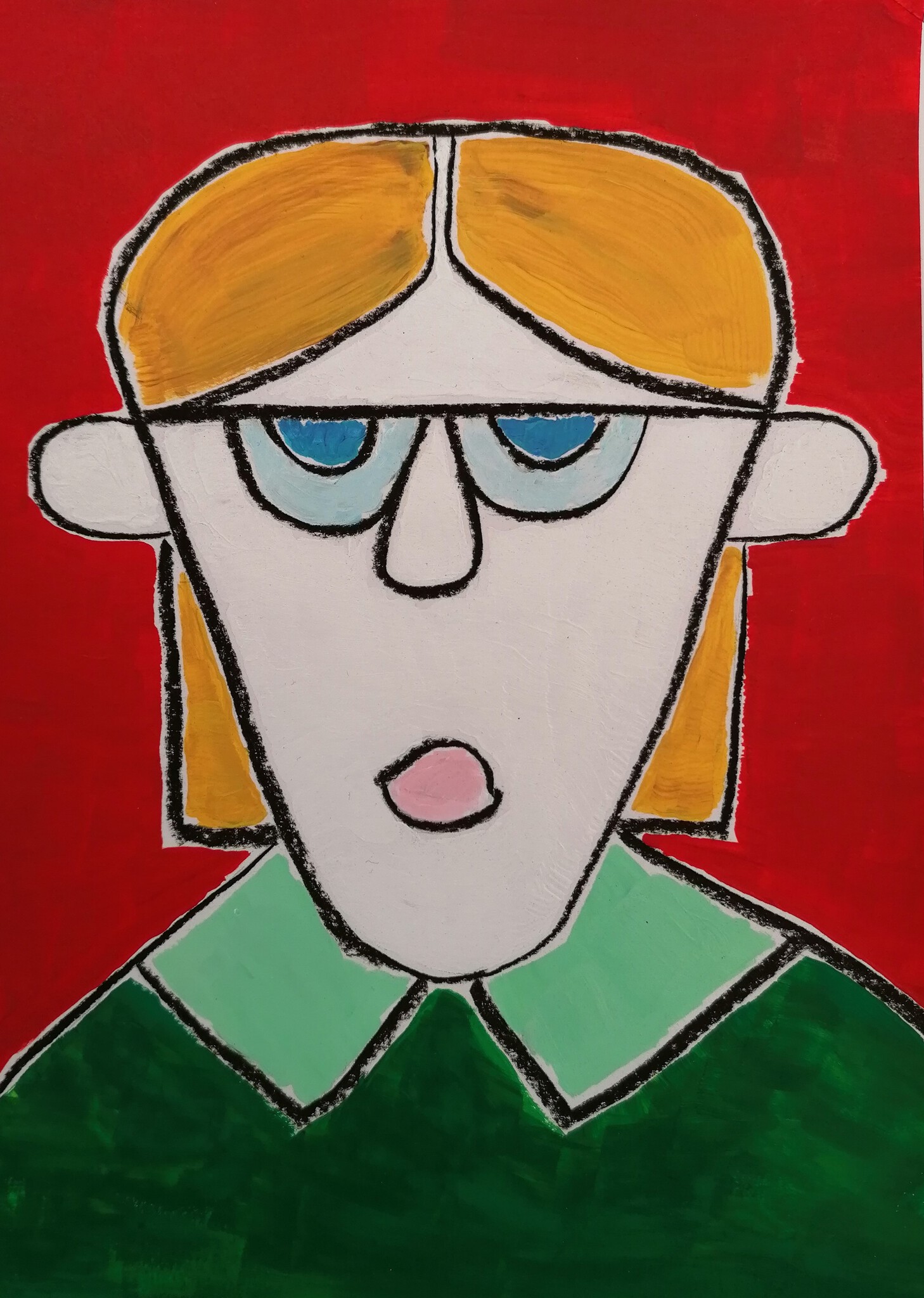 Acrylverf en houtskool op papier (A4 formaat)