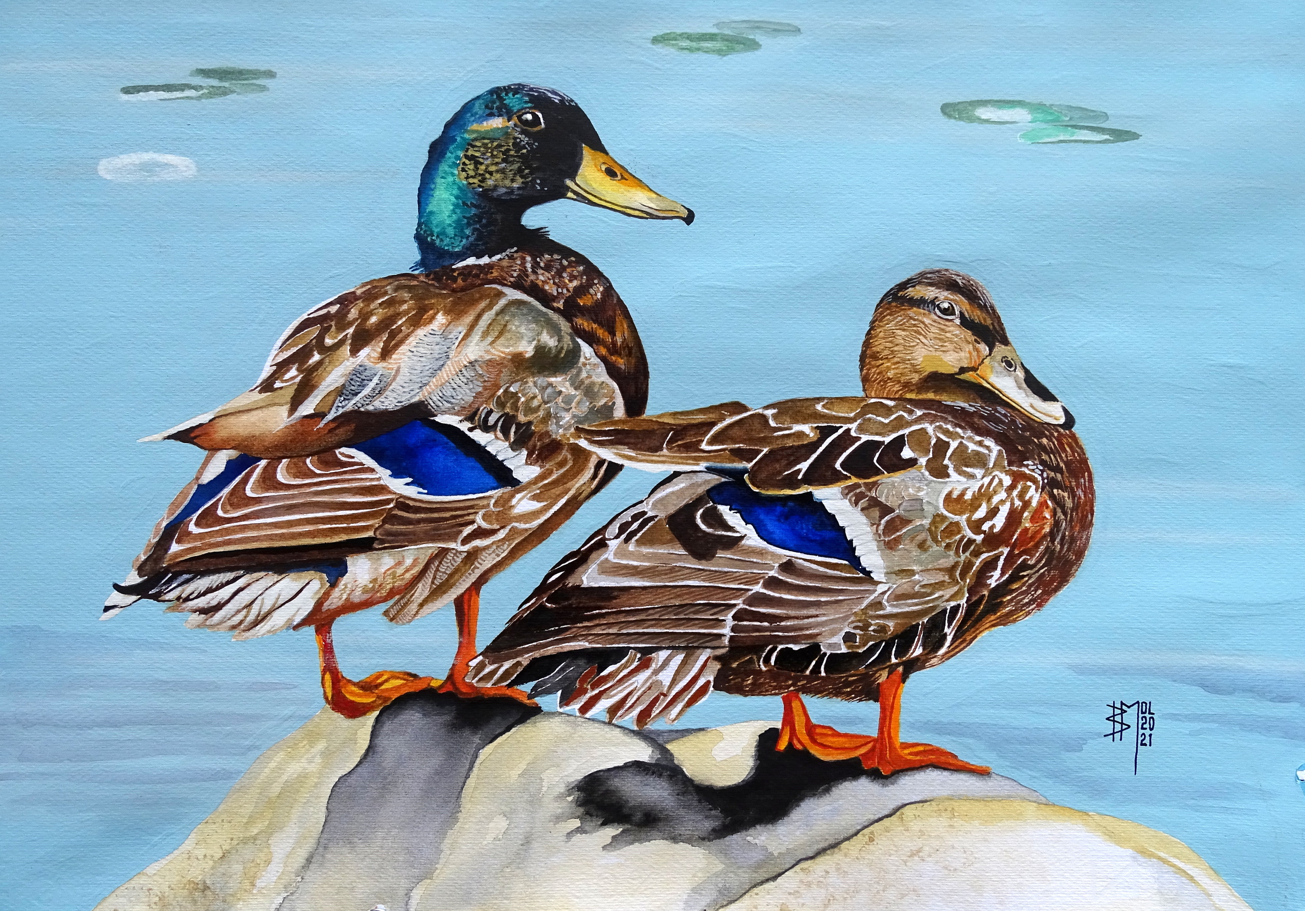 Aquarel met een gouache achtergrond , op koudgeperst katoenpapier ,maat 33x46cm