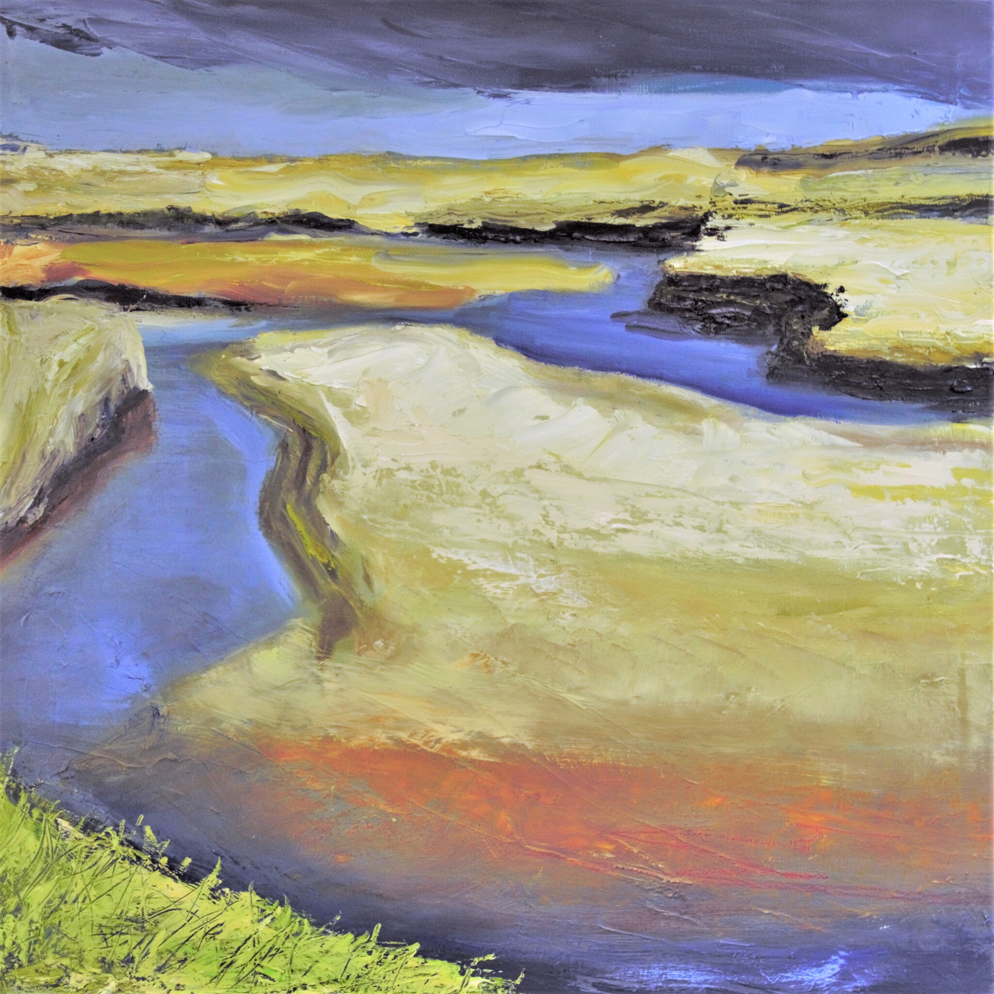 Zee Modern Geel Blauw Groen Kleurig Geabstraheerd Wadden
