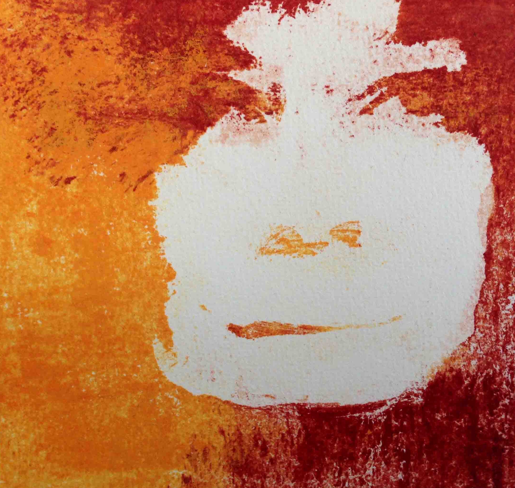 Afdruk met Arabische gom en olieverf op aquarelpapier.