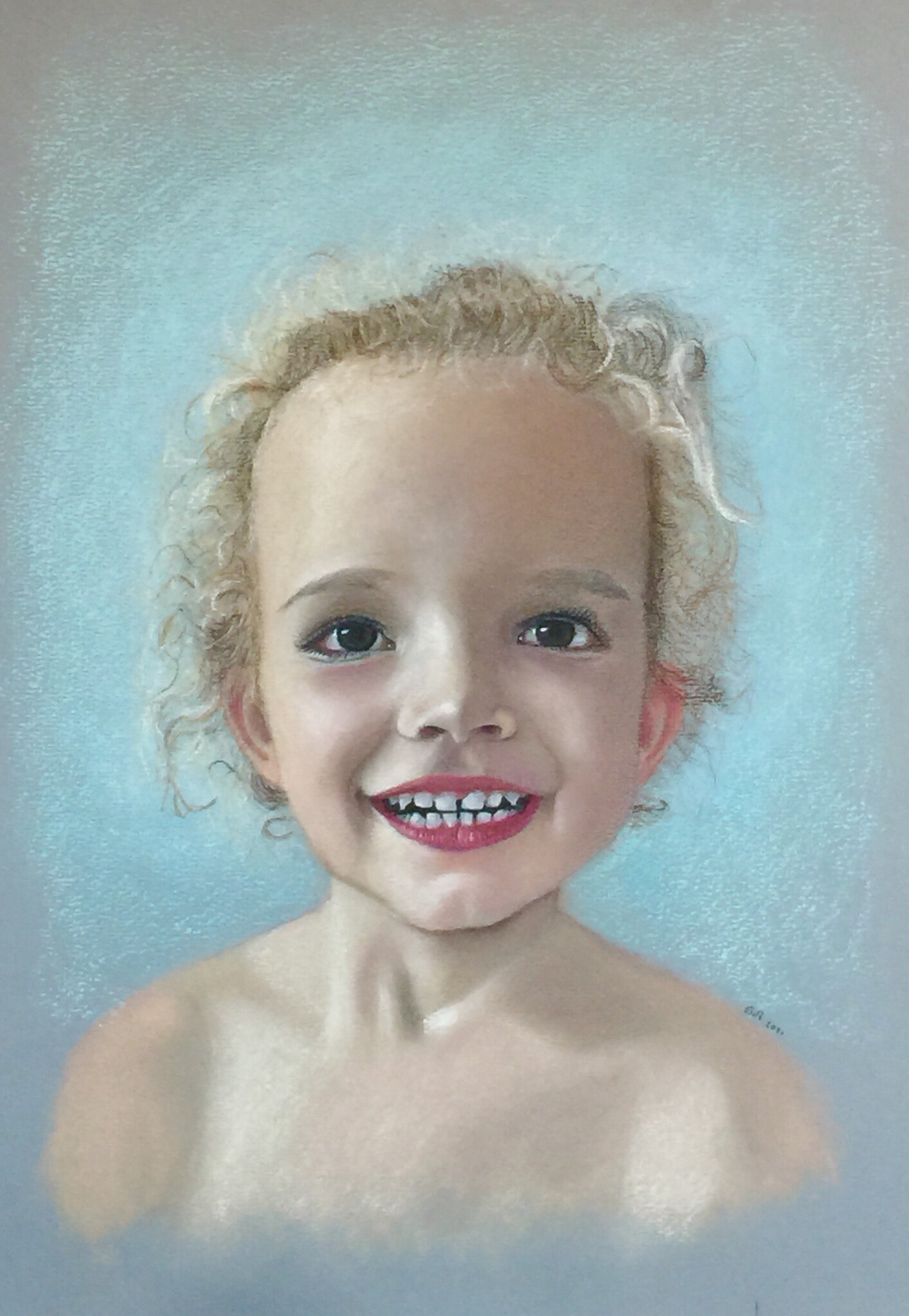 Meisje Portret Ogen Pastel Bruine Blond Krullen