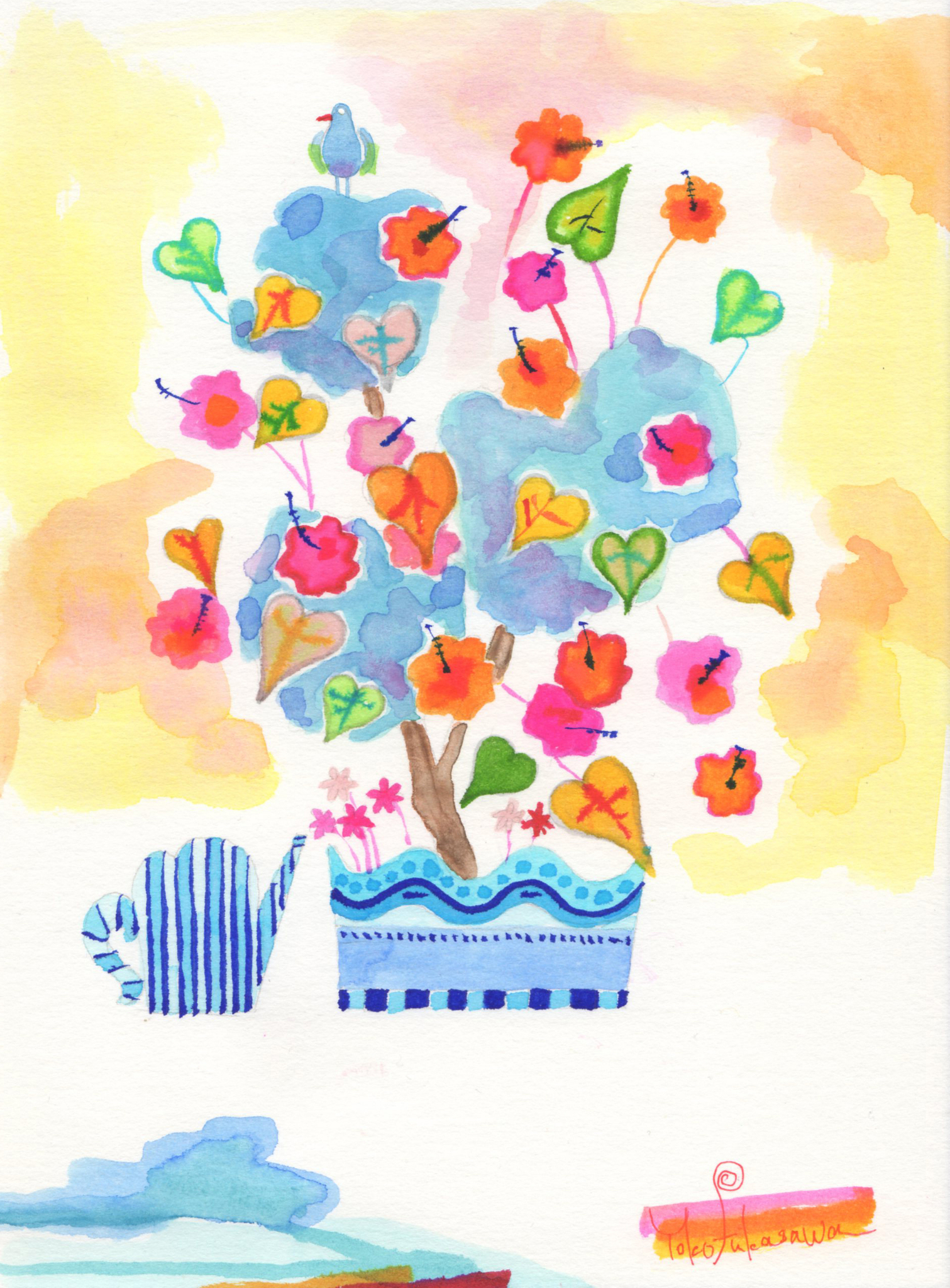 Yoko Fukasawa was born in 1982. 2001-Japan traditional craft department,Metal crafts major 2001-Volkswagen new Beetle - art contest The third place. 2002-TOKYO DOME - Tableware festival Fine work. 2017-And Schizophrenia has been revealed. Her paintings are outsider art. They are characterized by simple shapes and bright colors. She wants you to look at them and relax.