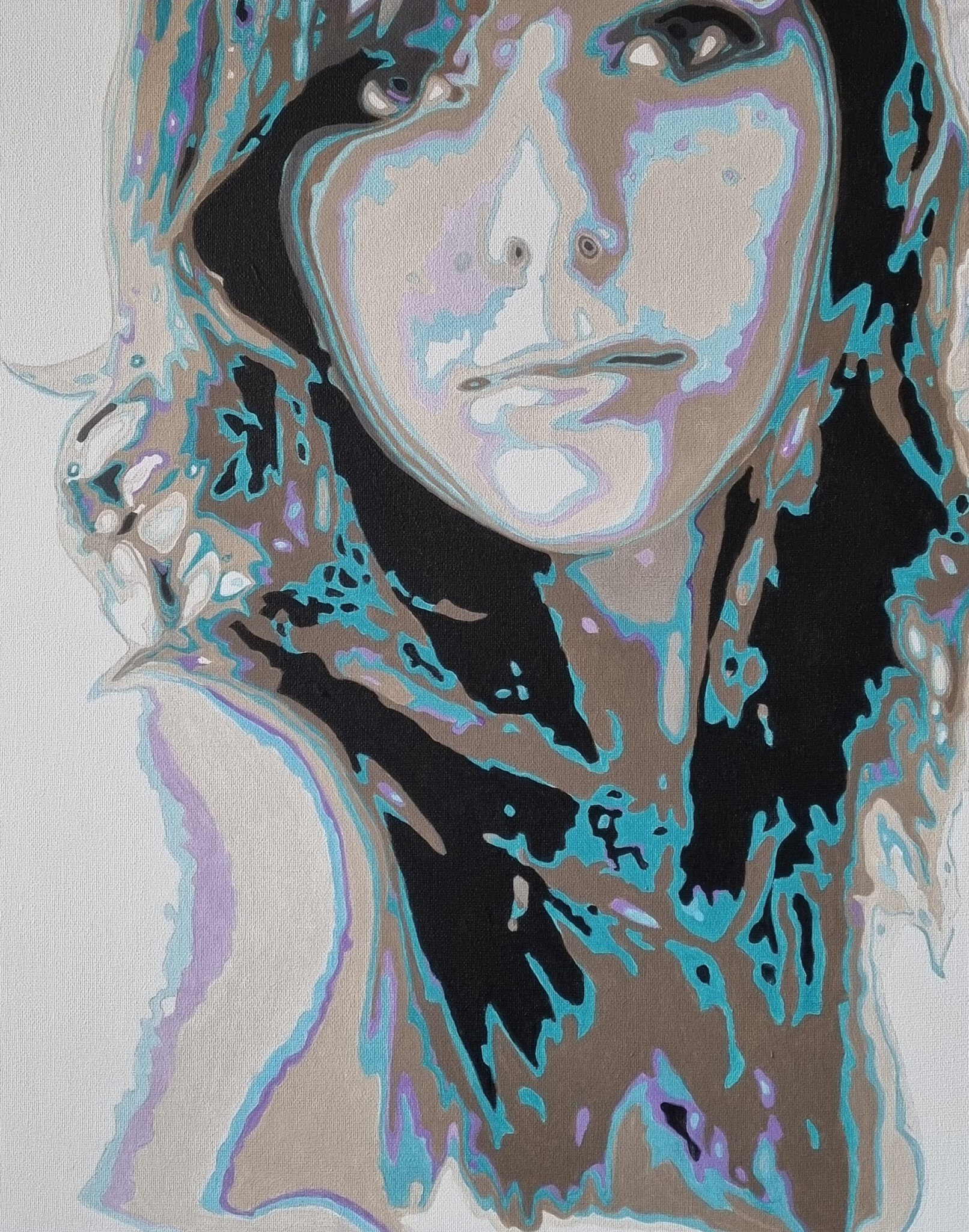 Zwart Blauw Acryl Paars Portret Licht Doek Abstraherend Lila