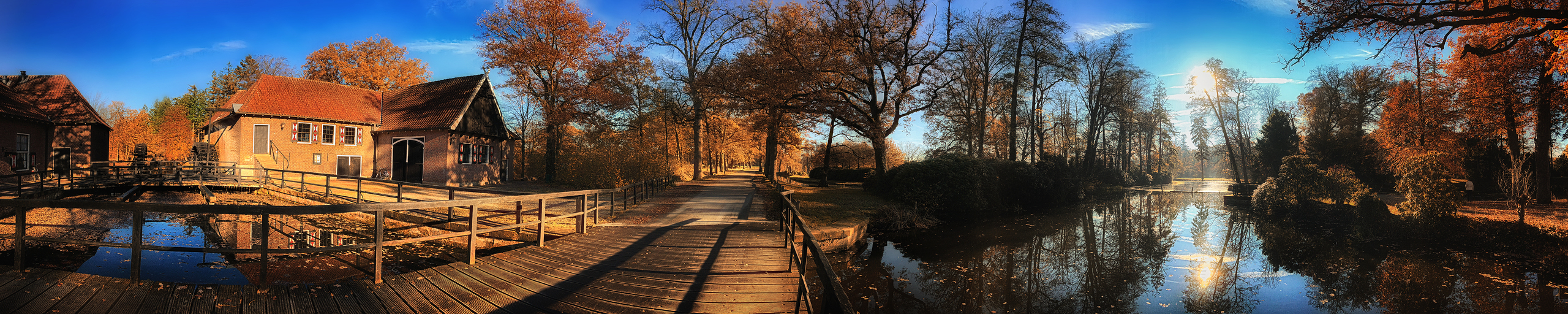 "Autumn in Denekamp" (PANORAMA) ©2019 Author: Edward Galagan Print size: 400cm x 80cm Denekamp, Singraven estate. The Netherlands Denekamp is a town in the Dutch province of Overijssel. Singraven estate is a country estate in the Noordoost Twente area with the historic water mill and the last water-powered saw mill in the Netherlands.