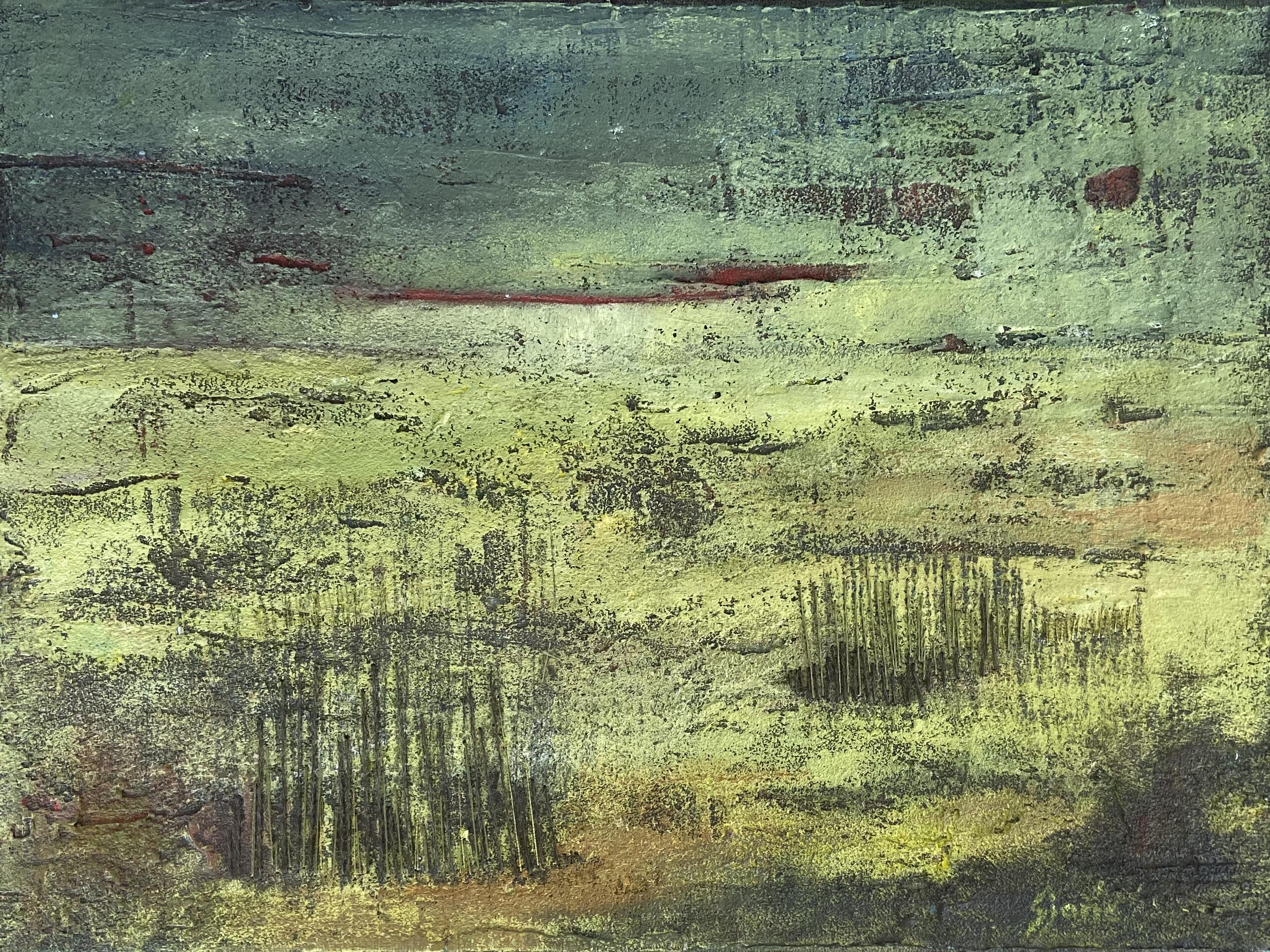 Het landschap is mijn grootste inspiratiebron. In de zomer heb ik veel buiten geschilderd. Mijn landschappen zijn kleurrijk en sterk geabstraheerd. Op het moment zijn mijn landschappen abstract.
