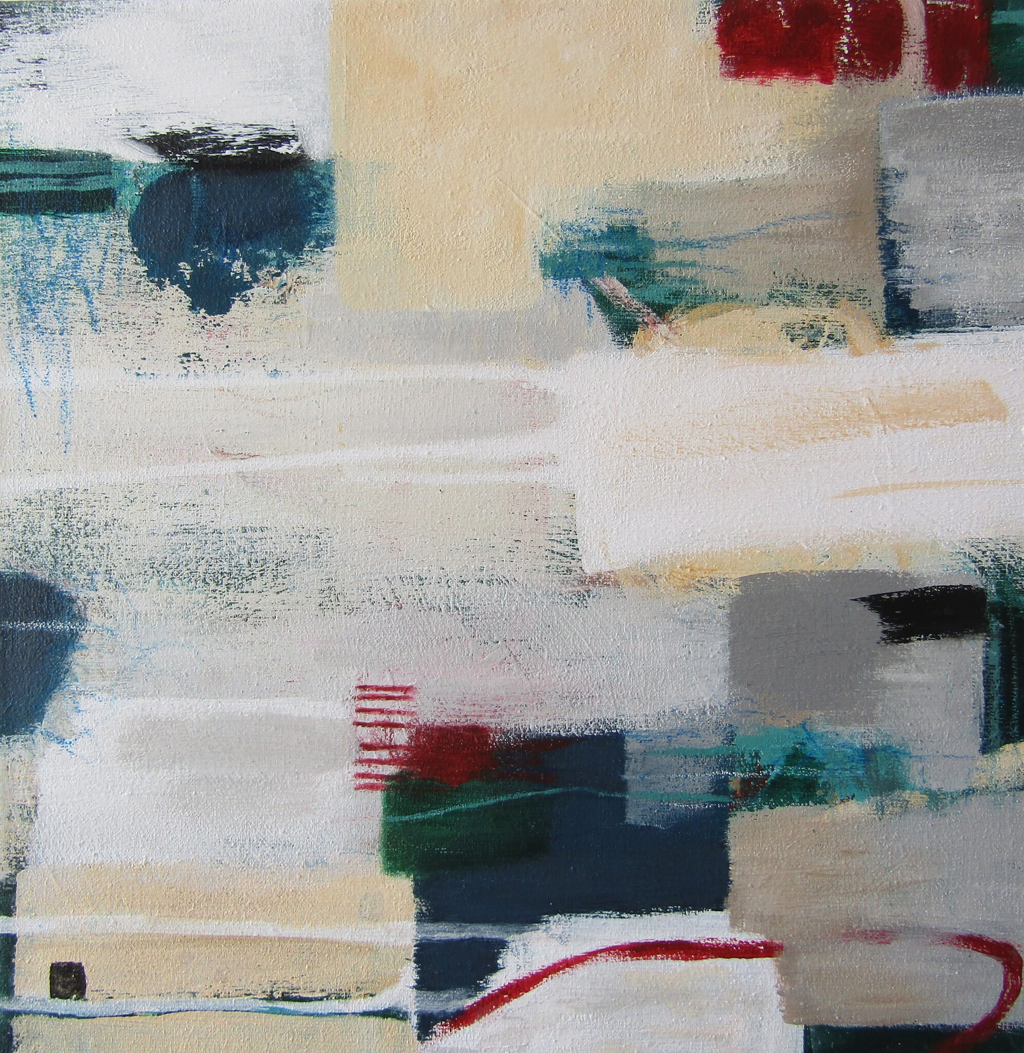 Abstract Rood Acryl Minimalistisch Lyrisch Landschappelijk Poëtisch Nachtblauw Beigewit