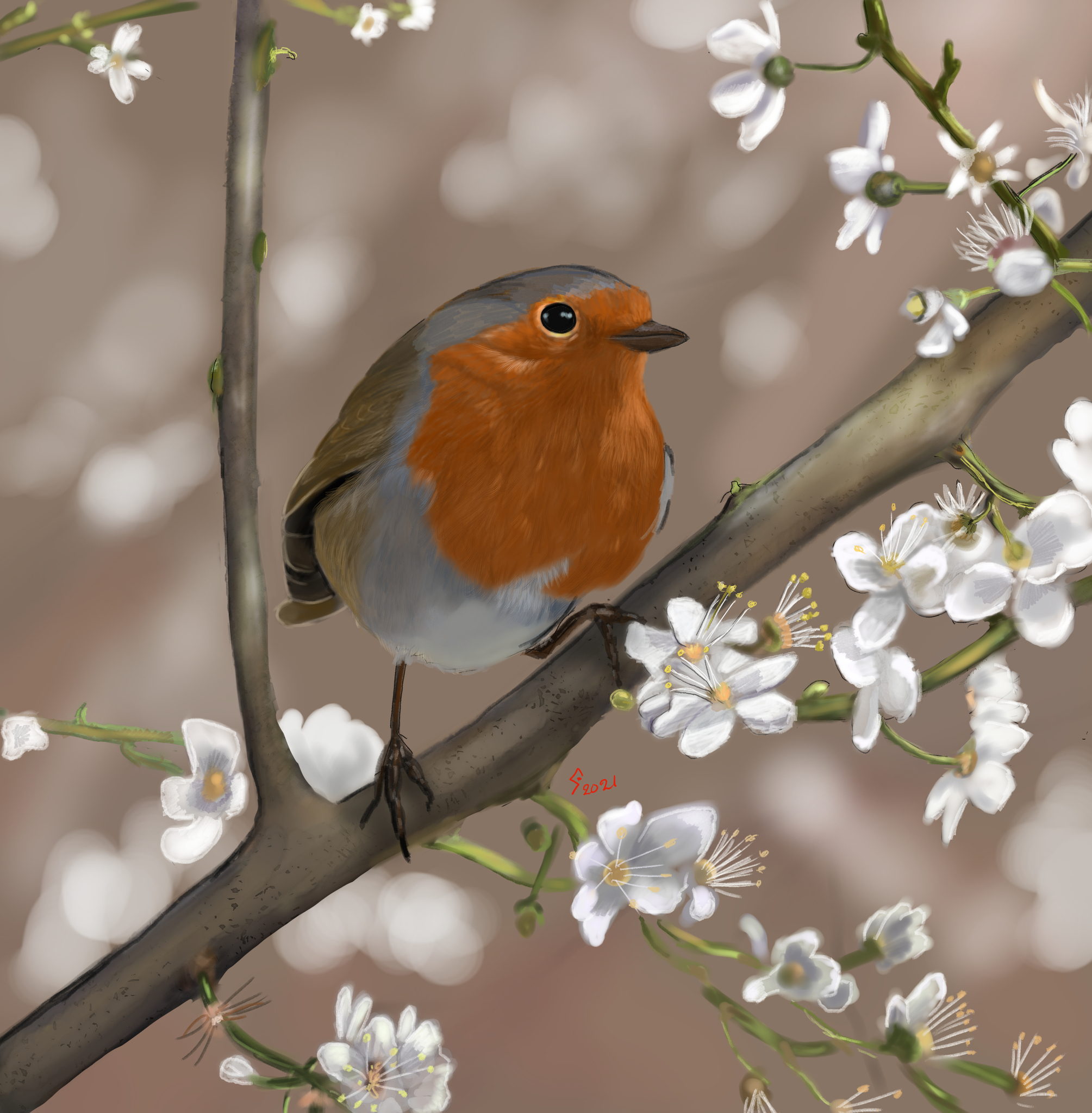 Bloesem en roodborstje
