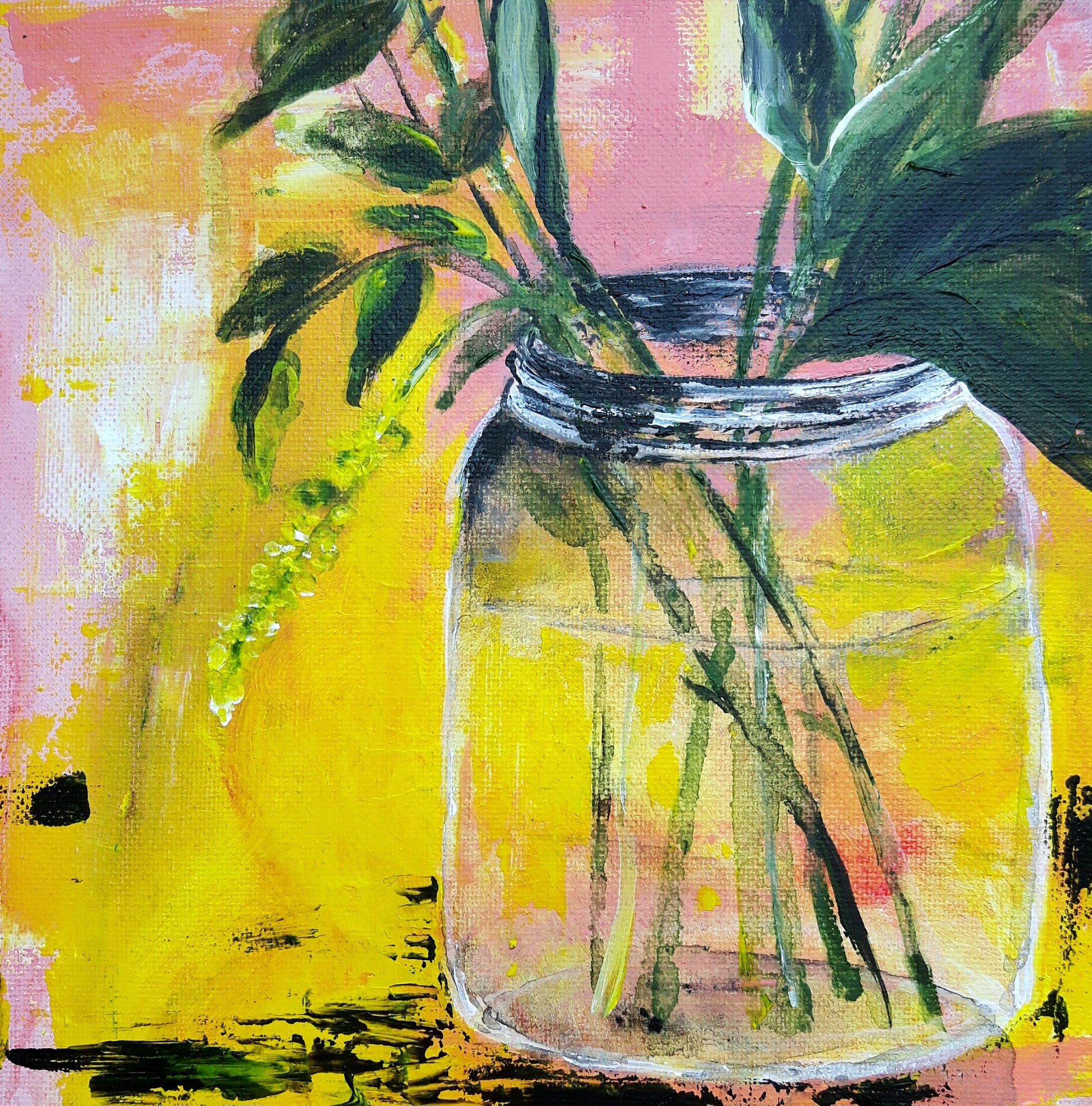 Geel Rose Groen Glas Bloementjes Potjevanglas