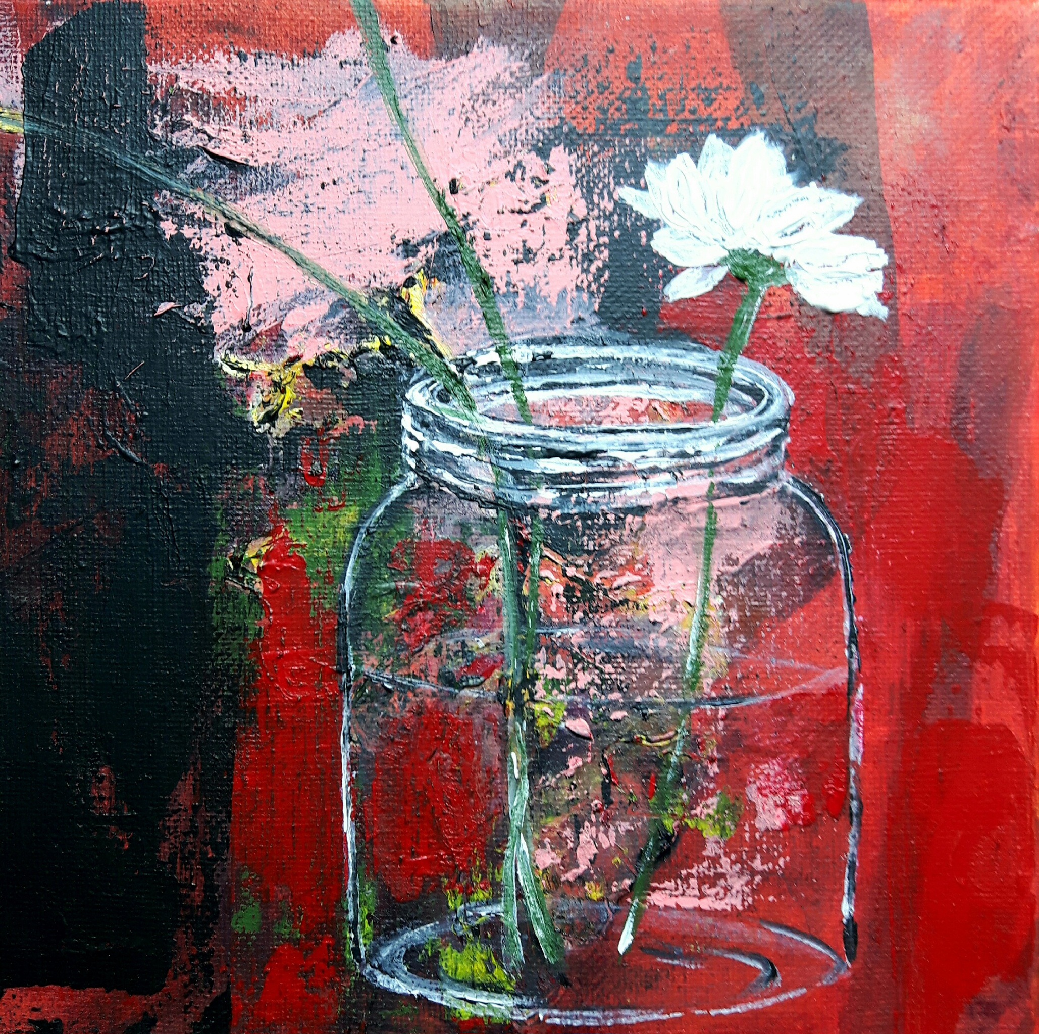 Wit Rood Zwart Groen Bloemetje Potjevanglas