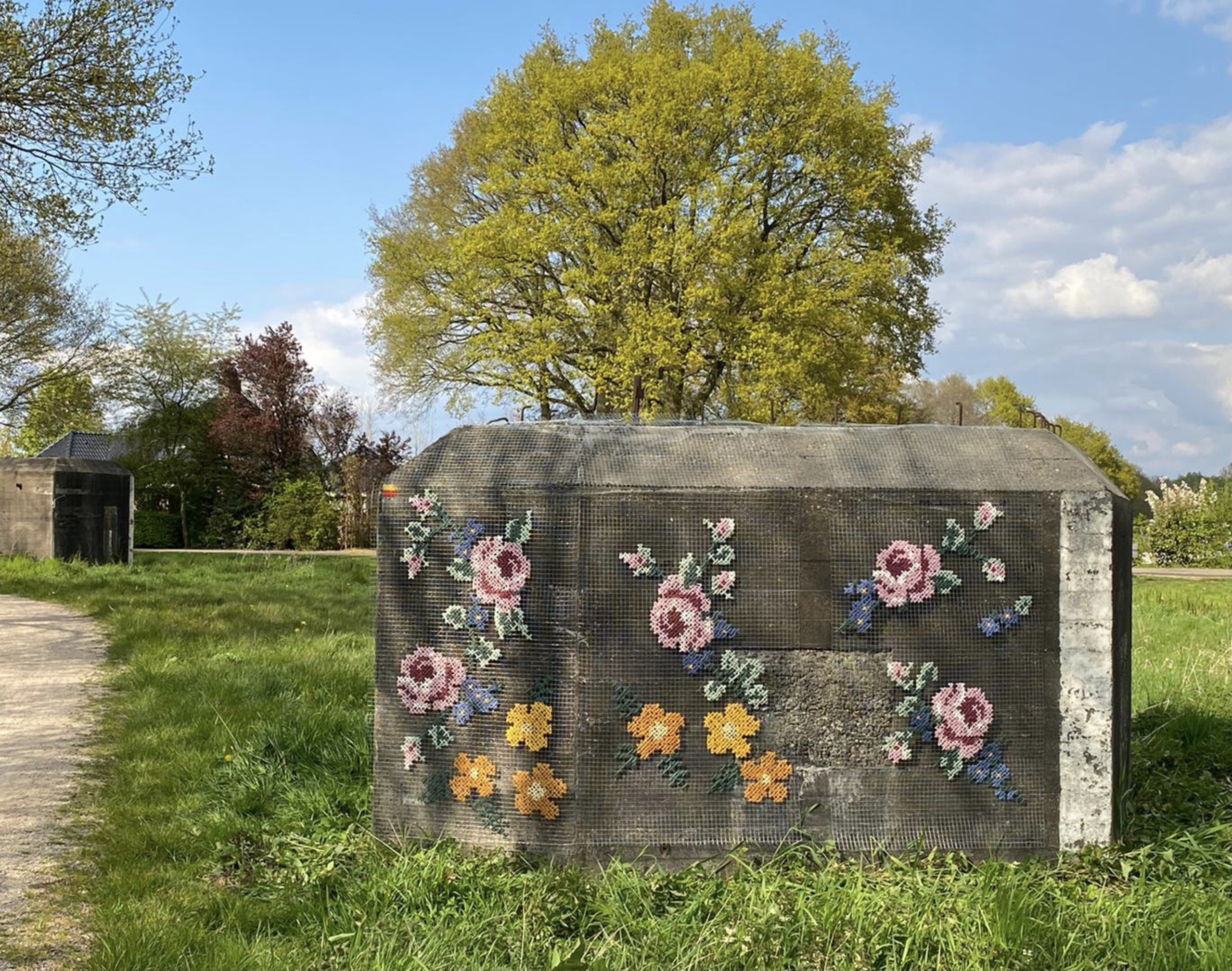Borduren XL, kruissteek XL op gaas. Graffiti met naald en draad.