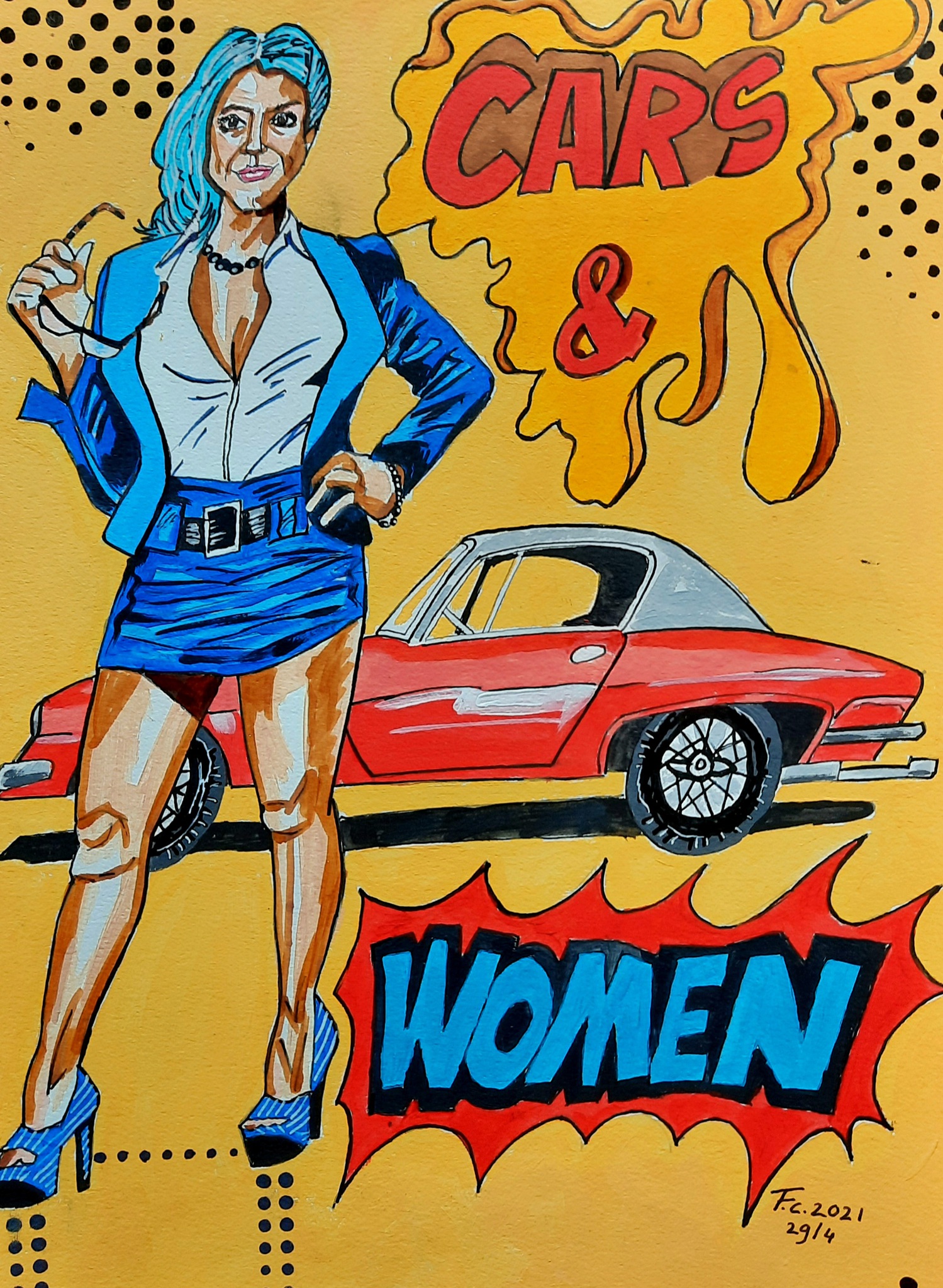 Cars Auto''s Vrouwen Women Popart Mixed Media