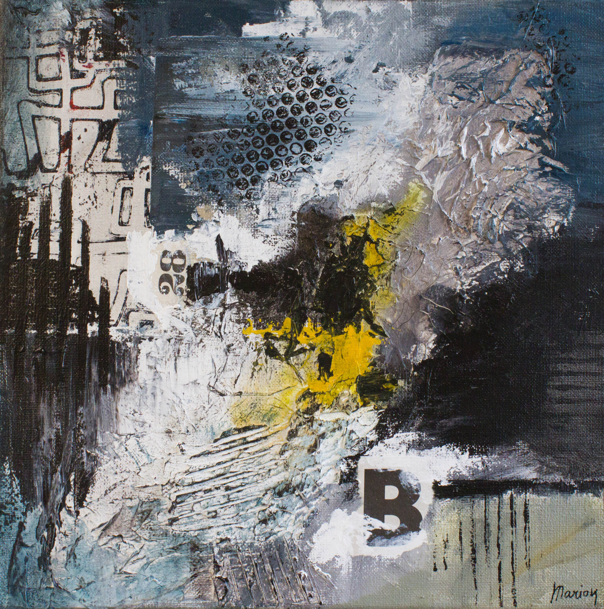 "Escape One" is ontstaan vanuit een opdracht uit een gevolgde cursus. Een experiment met een beperkt palet aan kleuren, vormen en technieken. Abstract intuïtief schilderen is voor mij de nieuwe richting waarmee ik aan het experimenteren ben.
