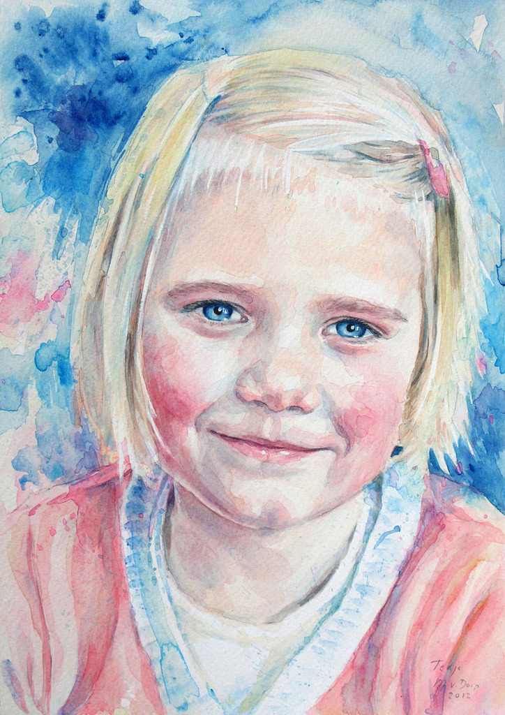 Portret Aquarel Meisje Realistisch Portretopdracht