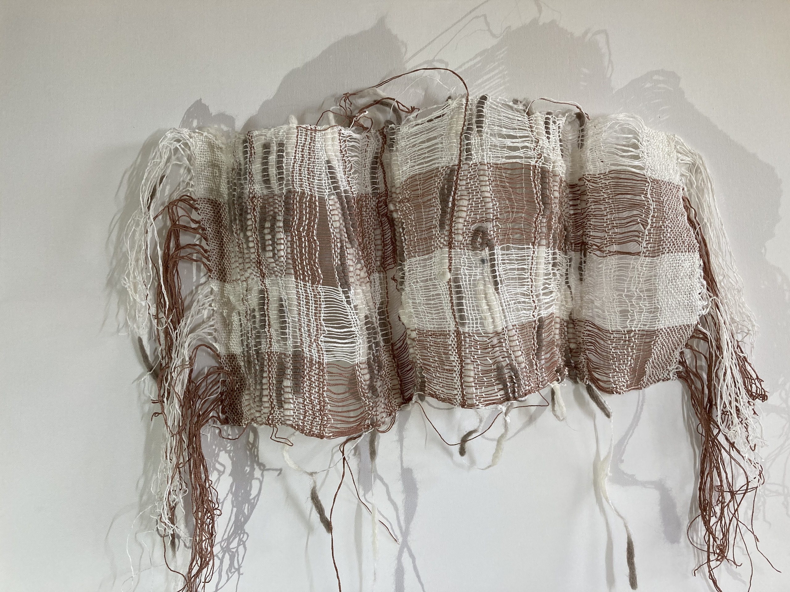 Textiel is mijn medium. Ik werk met organische vormen en experimenteer met technieken als wikkelen, weven en knopen. Door los te laten ontstaat er ruimte en zintuiglijke gelaagdheid.