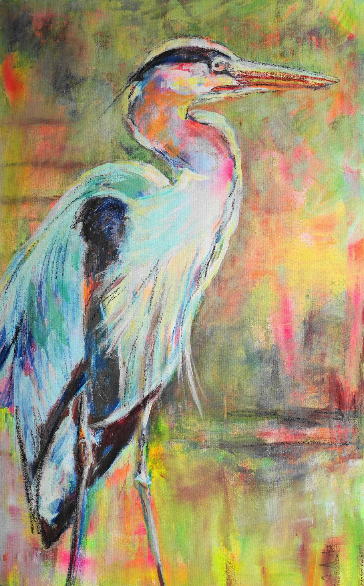 Schilderij Modern Blauw Vogel Kleurrijk Kunst Natuur Hedendaags Reiger Nederland Artprint