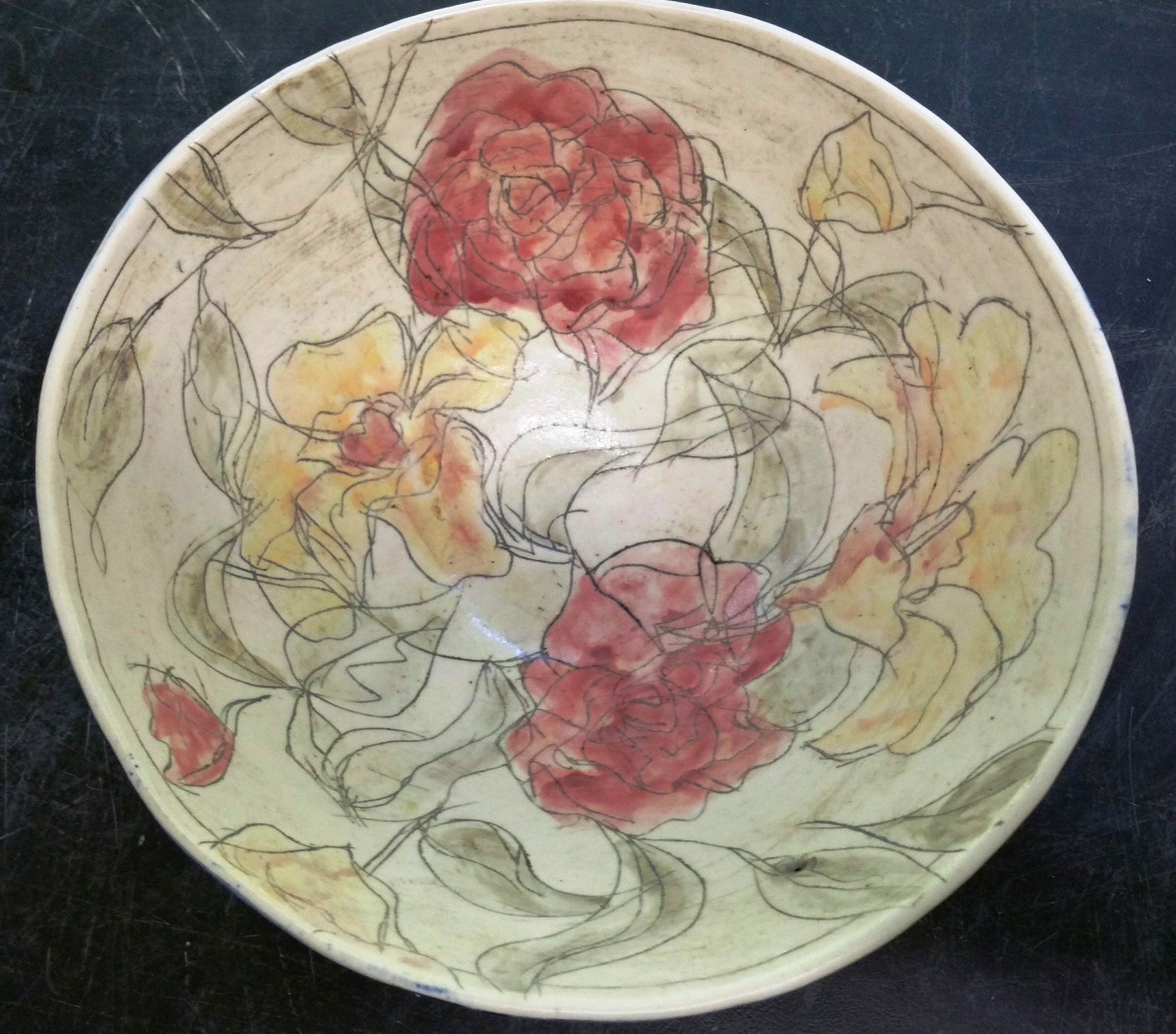 Een impressionistische kom met bloemen om de salade op te vrolijken.