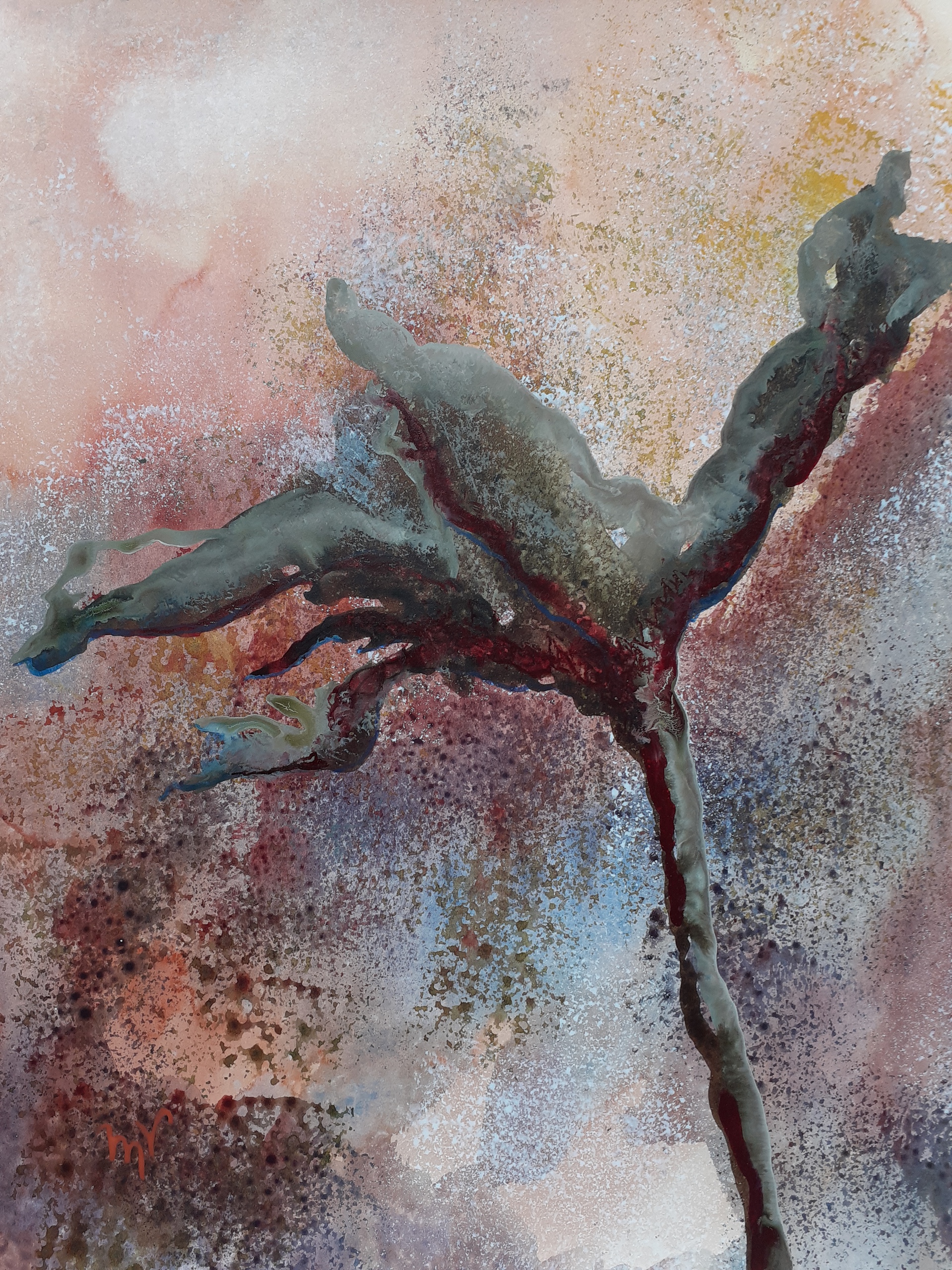 Mijn onderwerpen vind ik zowel in mijzelf als in mijn omgeving. Ik begin te werken vanuit de waarneming en laat deze dan langzamerhand steeds meer los.